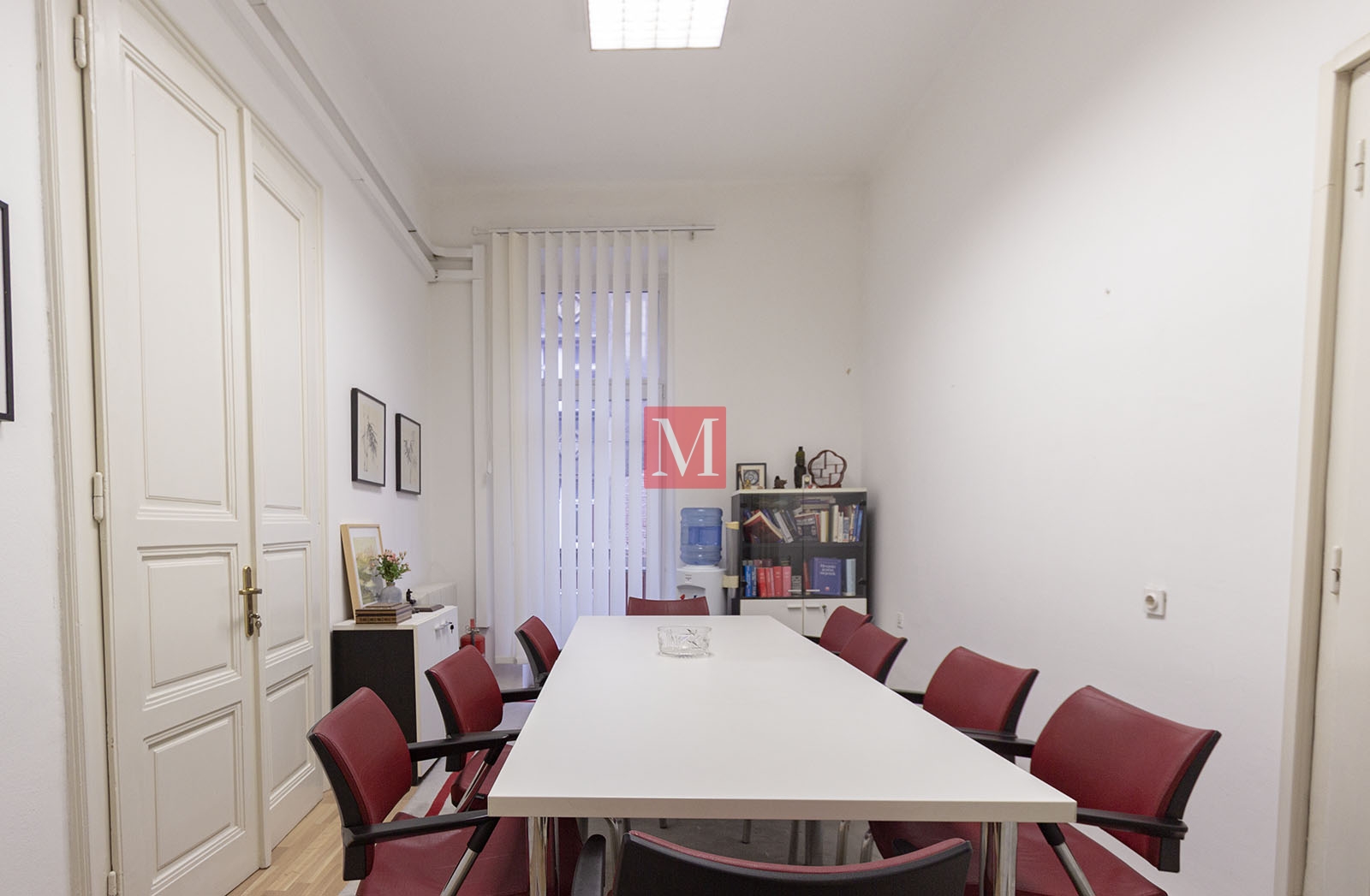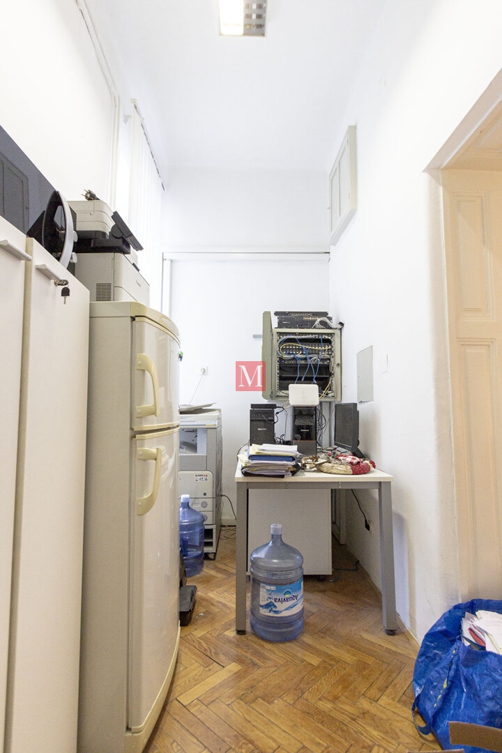 The space consists of an entrance hall and reception area, three large offices, one meeting room, an archive/storage room, a bathroom, and three balconies.It is rented furnished for long-term use, with possible minor adjustments to the furniture and interior layout.