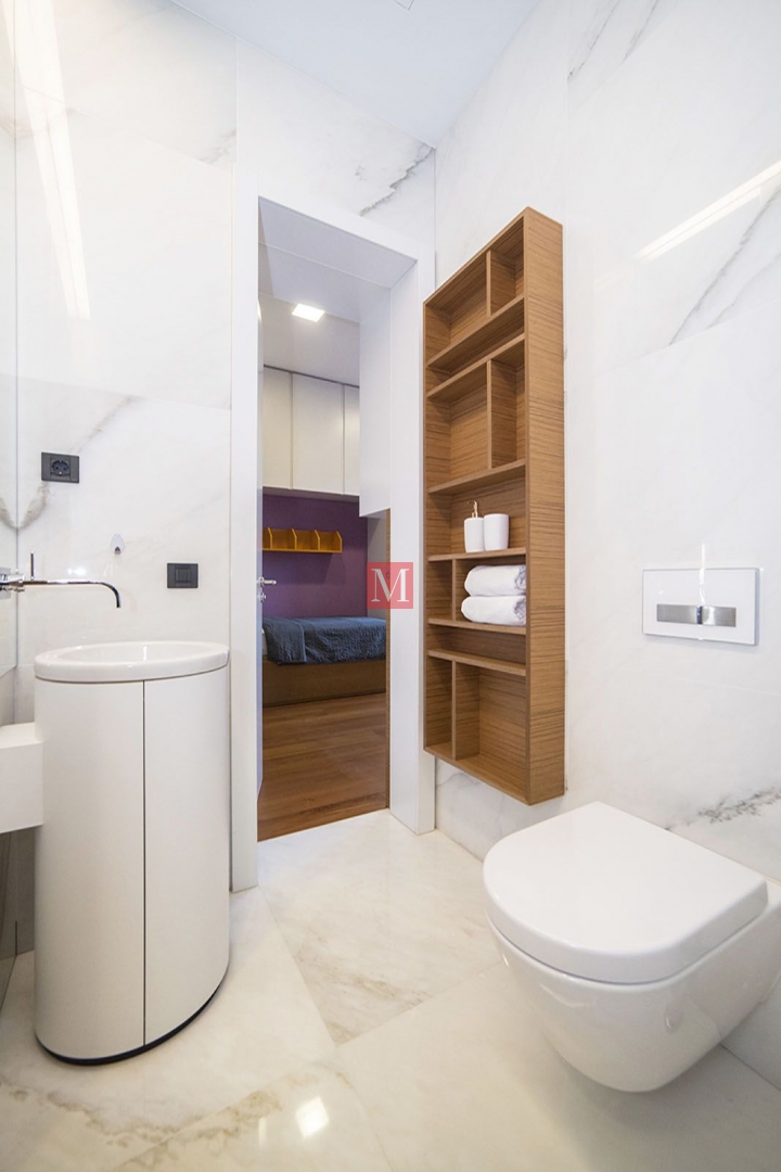 It consists of an entrance hall, open space living room with kitchen and dining room, bedroom with bathroom and master bedroom with dressing room and bathroom.