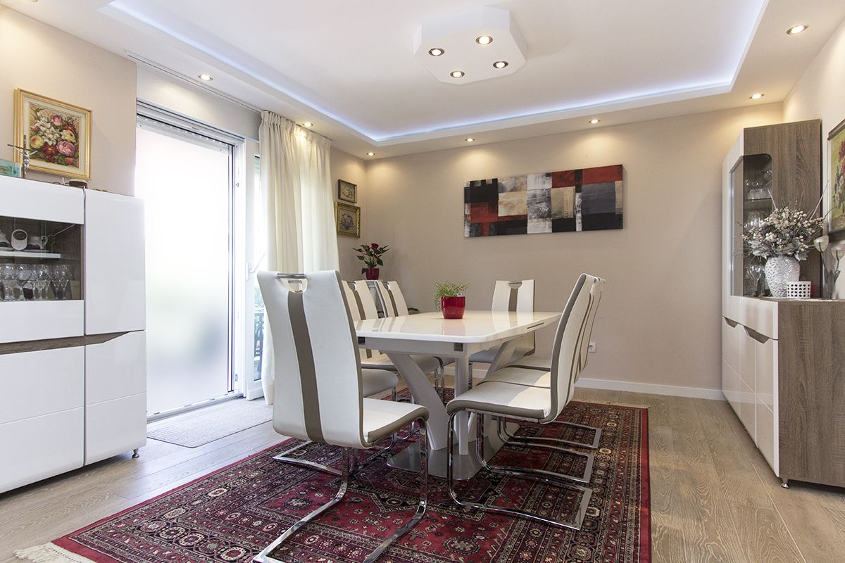 The heating is central on gas and it can also be connected to fireplace on a pellet. The owners are willing to additionally furnish the apartment according to the wishes of future tenants. The apartment comes with a big garage which fits 2 vehicles.