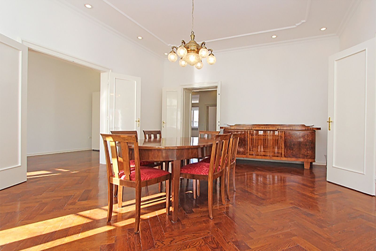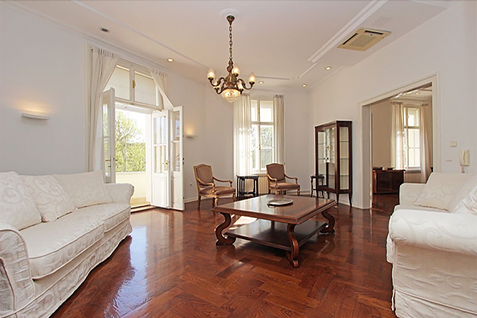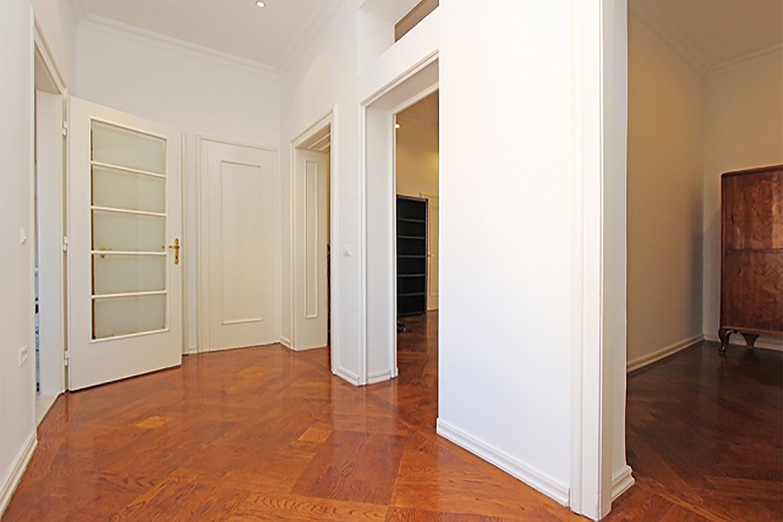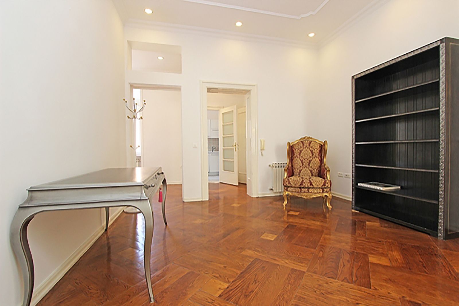 It is located on the 3rd floor of a safe building (green label) without an elevator and consists of an entrance hall, 4 large salons / rooms, a lavish hallway / library, 1 smaller room, a modern kitchen, bathroom with toilet, guest toilet and a balcony.