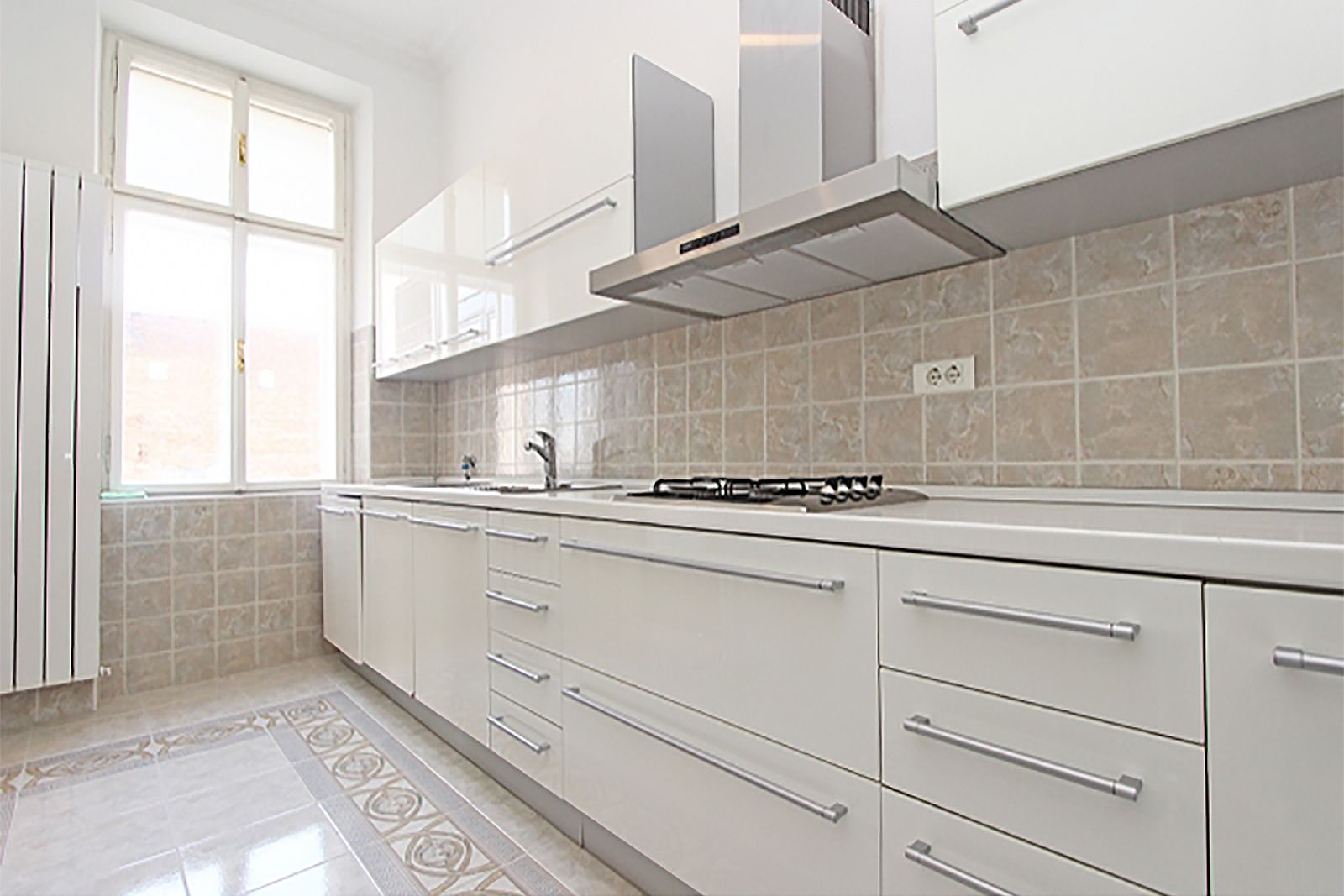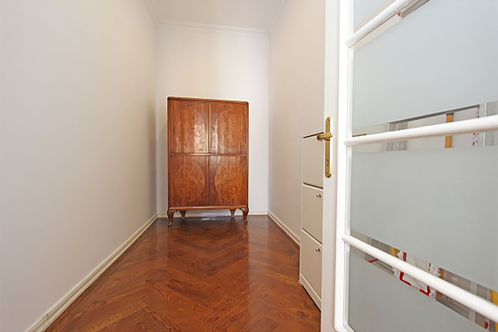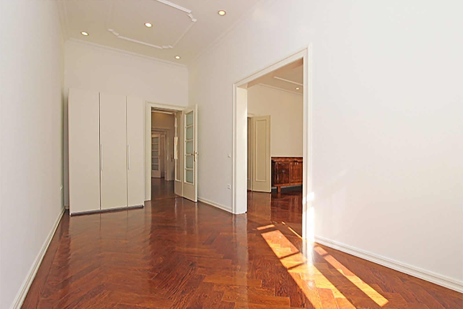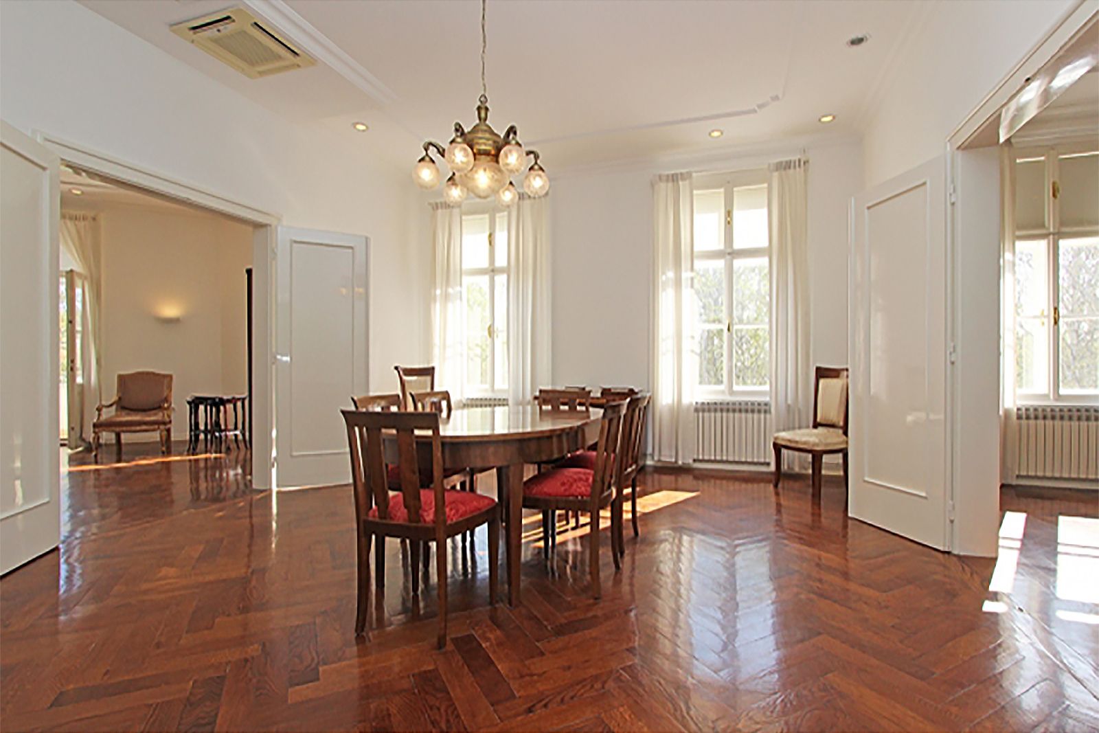 It is located on the 3rd floor of a safe building (green label) without an elevator and consists of an entrance hall, 4 large salons / rooms, a lavish hallway / library, 1 smaller room, a modern kitchen, bathroom with toilet, guest toilet and a balcony.