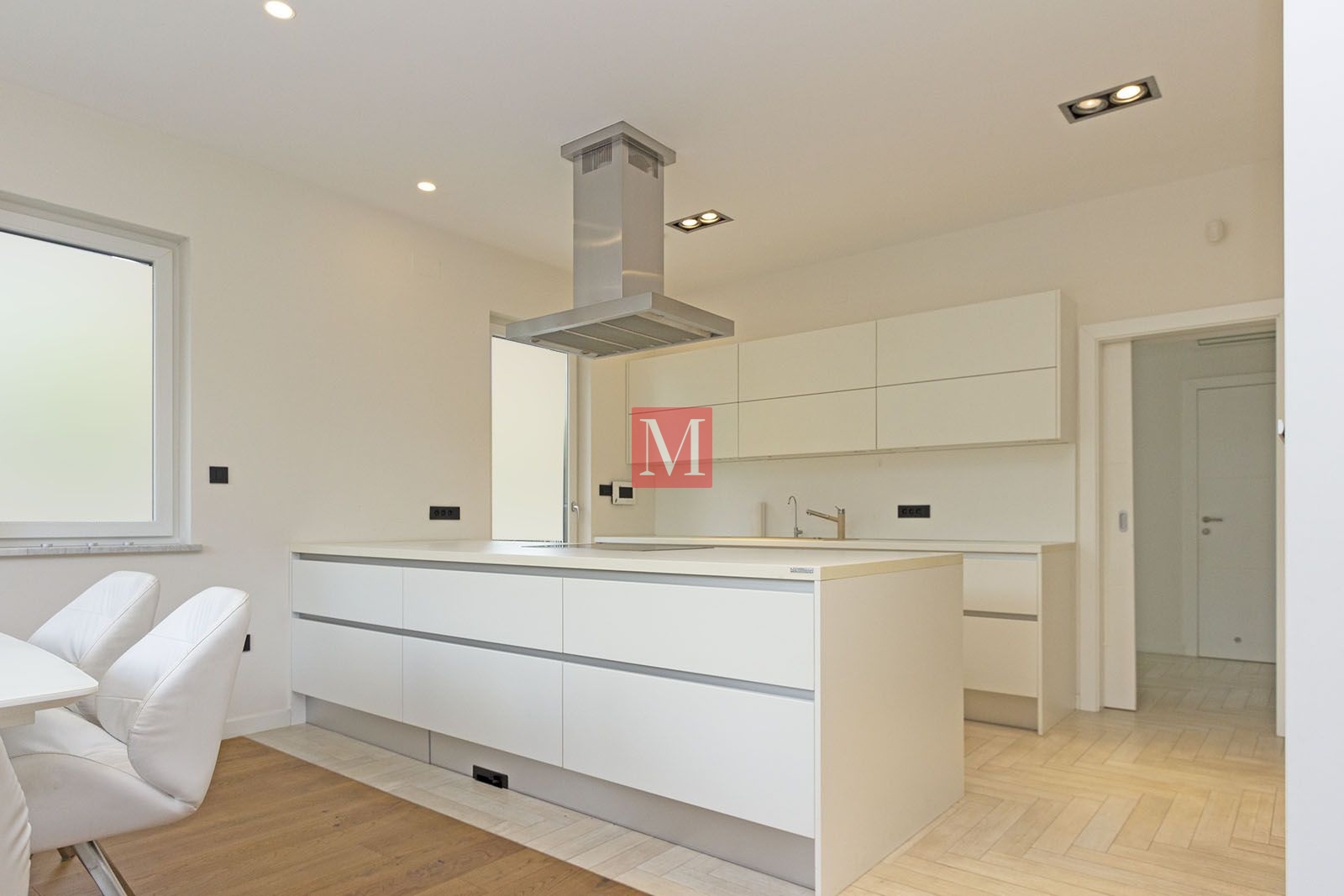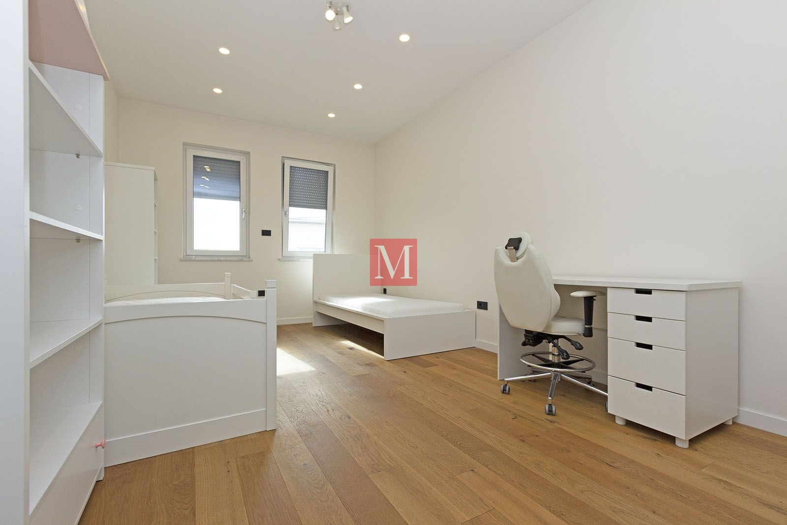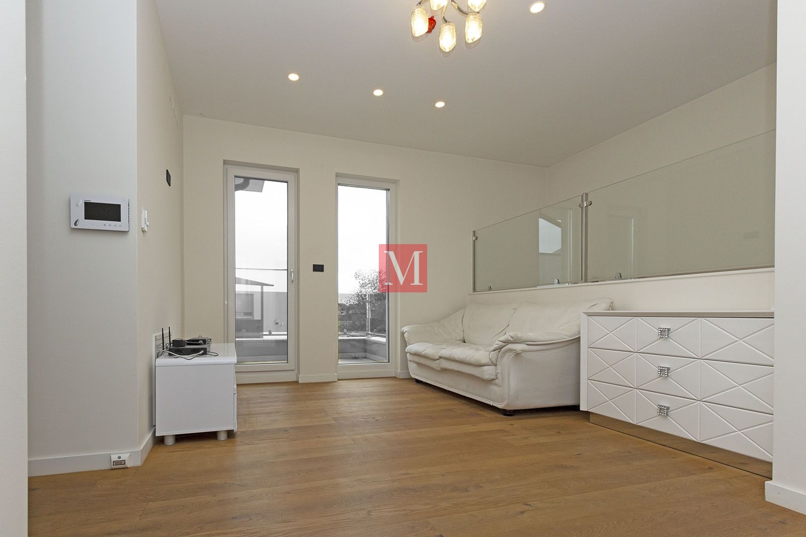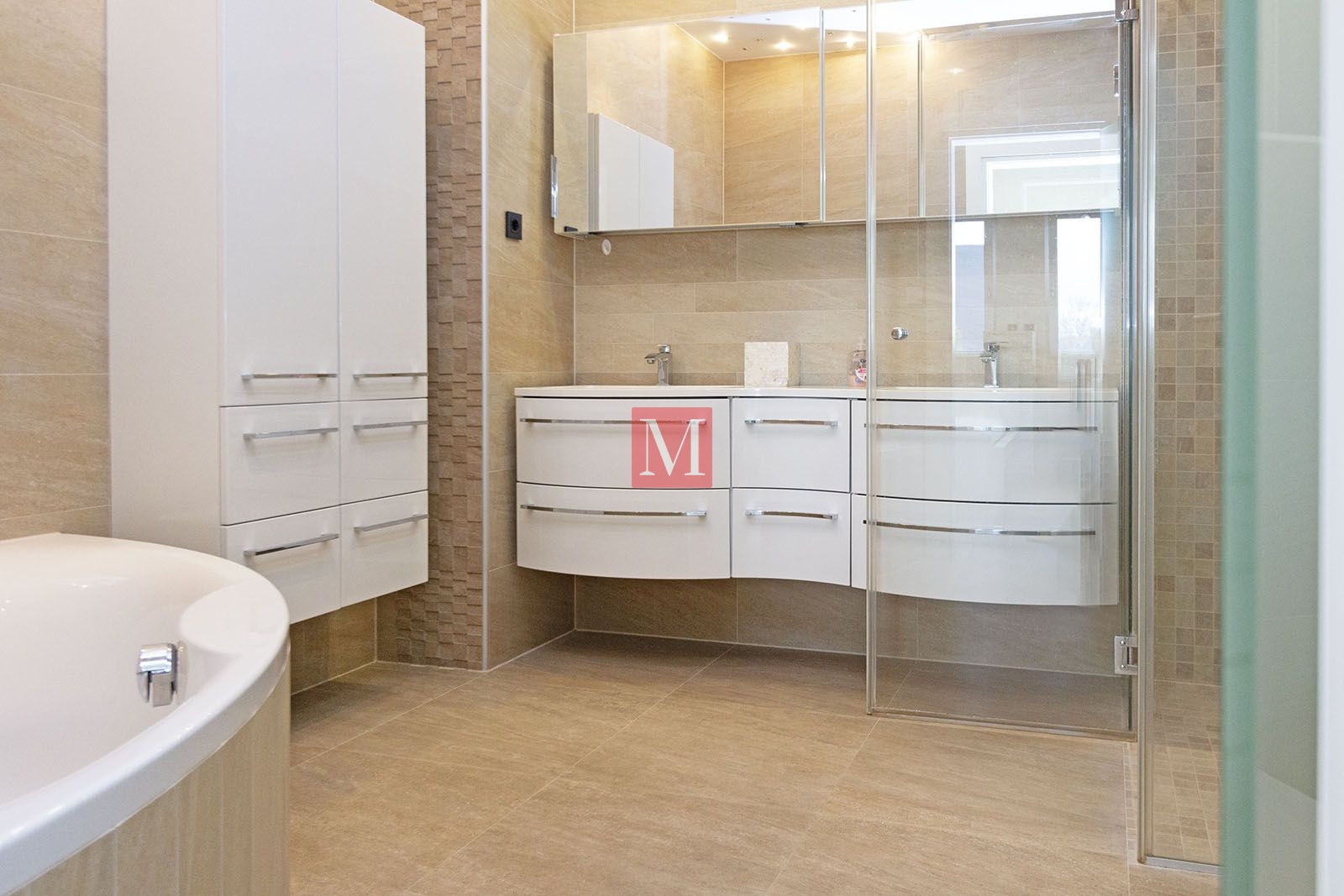basement (completely built – parquet/ceramic floors, underfloor heating, suitable for living or offices). It consists of: sauna, 2 large rooms (2x35m2), a pantry, boiler room, guest toilet.ground floor: living room, dining room, kitchen, bedroom with ensuite bathroom, guest toilet, hallway, built-in wardrobe, terrace (28m2), garden.1st floor: small living room, built-in wardrobe, three bedrooms, bathroom, utility room – laundry room/storage room, small balcony, loggia (9m2).attic space: big room (50m2) suitable for storage.The heating is in all rooms under the floor (including the basement), floor gas with separate thermometers for temperature regulation in each room, inverter air conditioning, central vacuum cleaner, video intercom, video surveillance, alarm with fire alarm, internet and TV connections in each room (including basement), top-quality carpentry with a high degree of protection against burglary and thermal and sound insulation (thermal coefficient 0.6), electric shutters, mosquito nets, built-in wardrobes, fingerprint-based door opening, LED lighting. Luxuriously equipped kitchen (DAN, Miele appliances with additional appliances – steam oven, induction hob, fridge for pizza/wine).