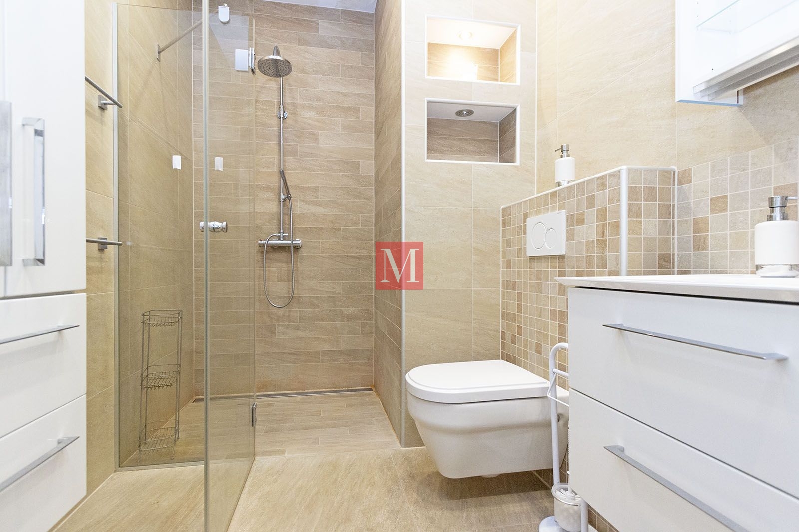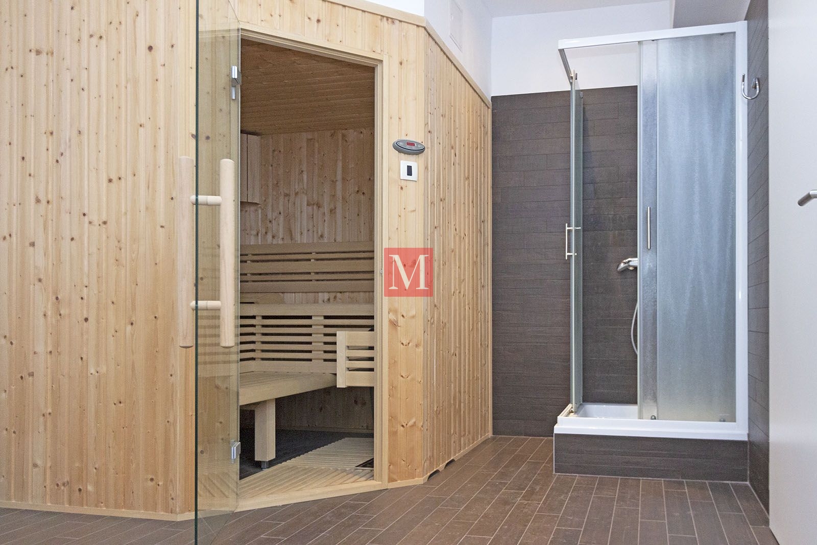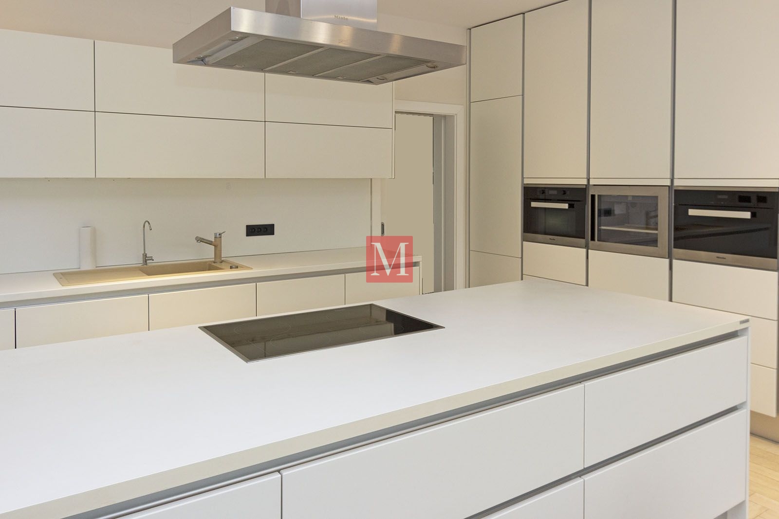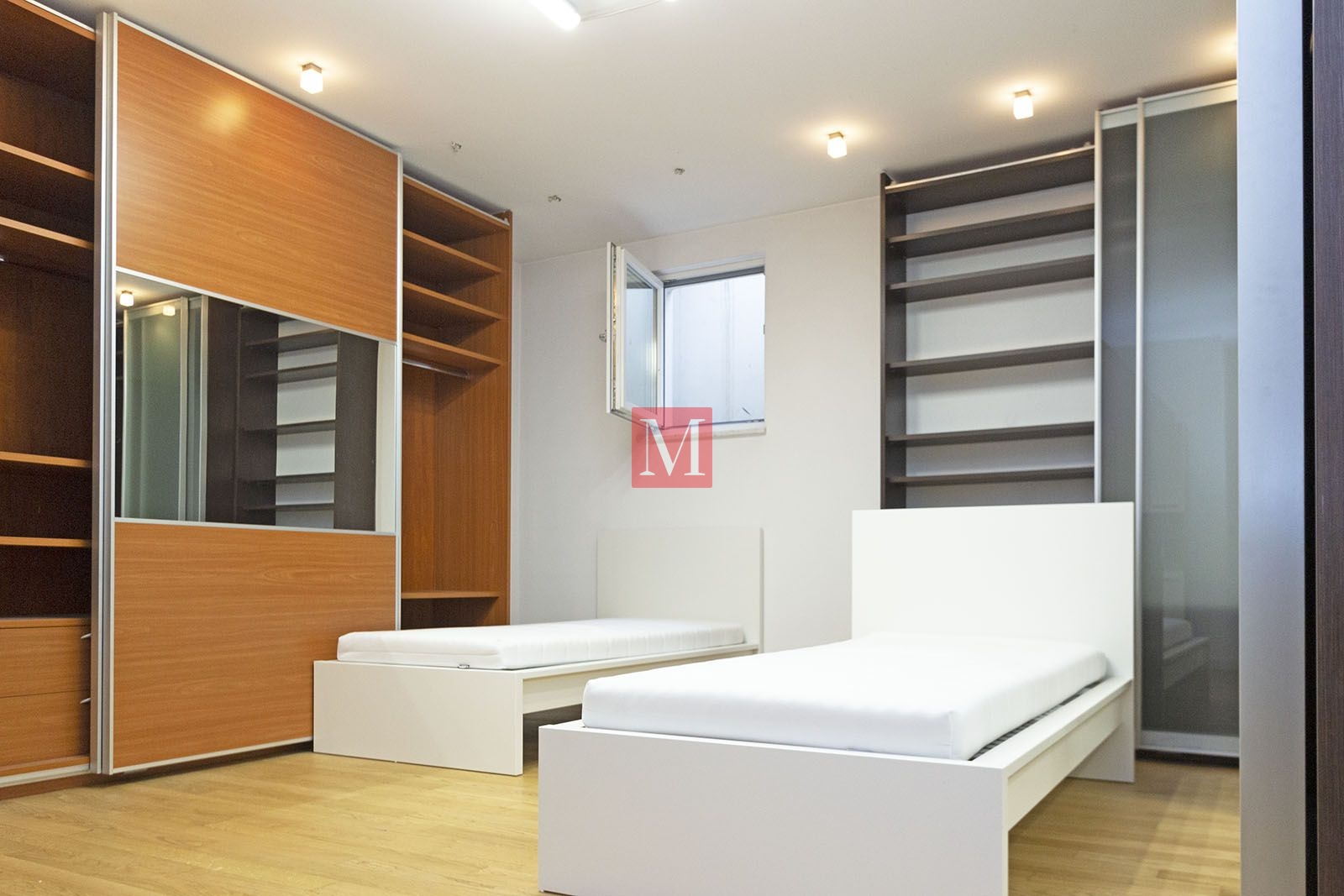 basement (completely built – parquet/ceramic floors, underfloor heating, suitable for living or offices). It consists of: sauna, 2 large rooms (2x35m2), a pantry, boiler room, guest toilet.ground floor: living room, dining room, kitchen, bedroom with ensuite bathroom, guest toilet, hallway, built-in wardrobe, terrace (28m2), garden.1st floor: small living room, built-in wardrobe, three bedrooms, bathroom, utility room – laundry room/storage room, small balcony, loggia (9m2).attic space: big room (50m2) suitable for storage.The heating is in all rooms under the floor (including the basement), floor gas with separate thermometers for temperature regulation in each room, inverter air conditioning, central vacuum cleaner, video intercom, video surveillance, alarm with fire alarm, internet and TV connections in each room (including basement), top-quality carpentry with a high degree of protection against burglary and thermal and sound insulation (thermal coefficient 0.6), electric shutters, mosquito nets, built-in wardrobes, fingerprint-based door opening, LED lighting. Luxuriously equipped kitchen (DAN, Miele appliances with additional appliances – steam oven, induction hob, fridge for pizza/wine).