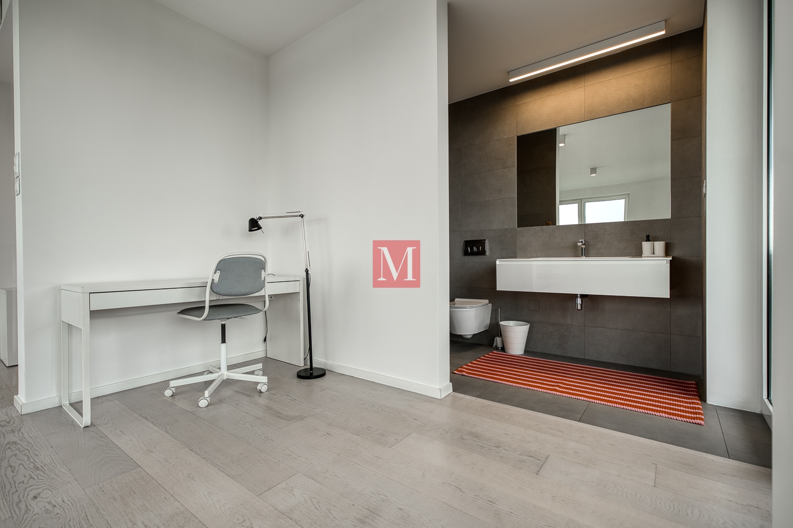 – second floor: two spacious bedrooms, each with its own bathroom, wardrobe and access to a balcony, one smaller bedroom