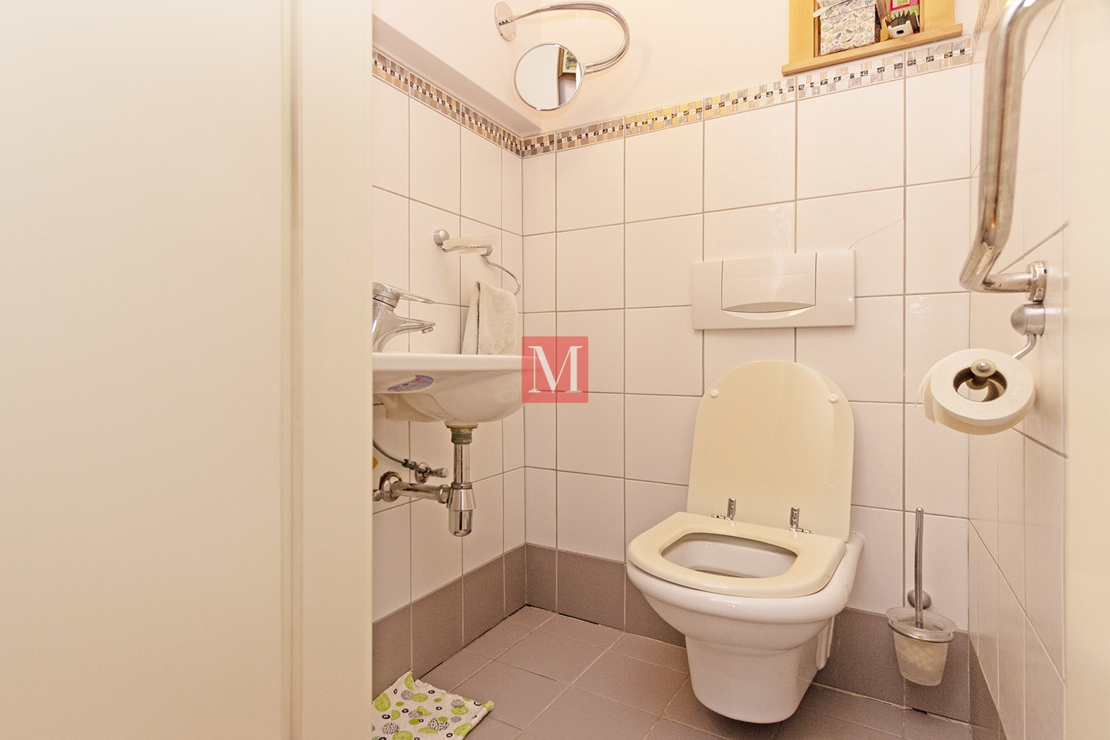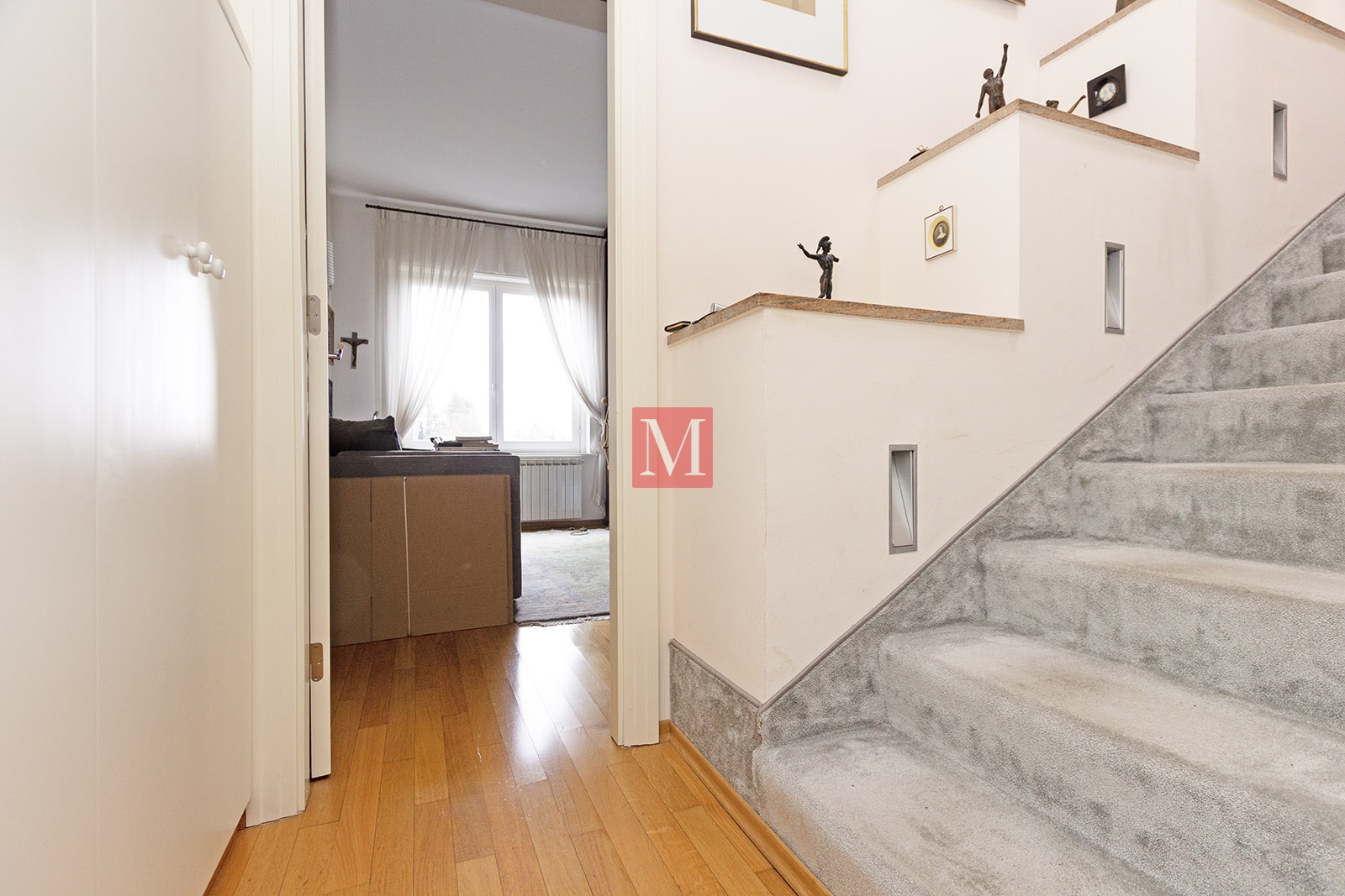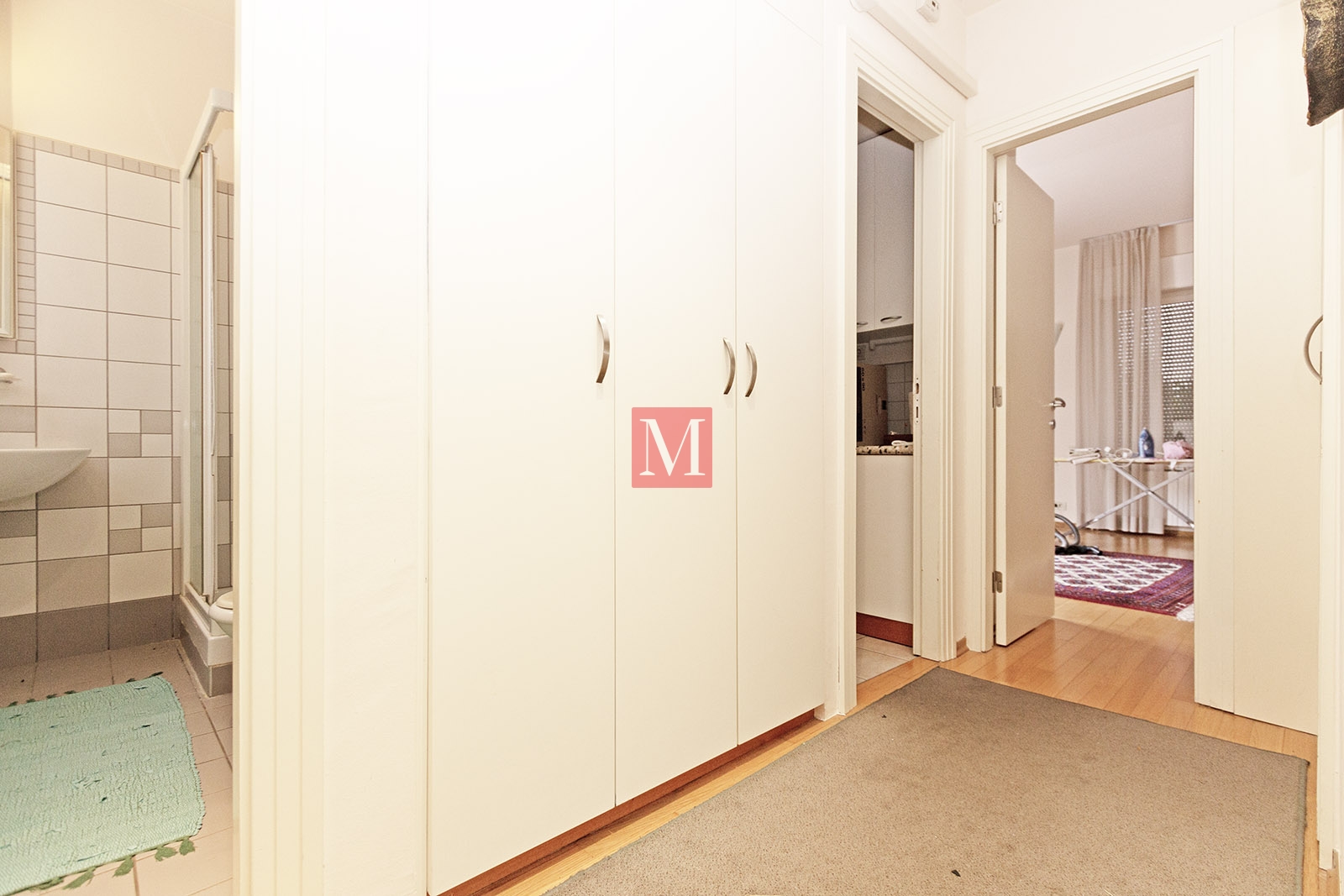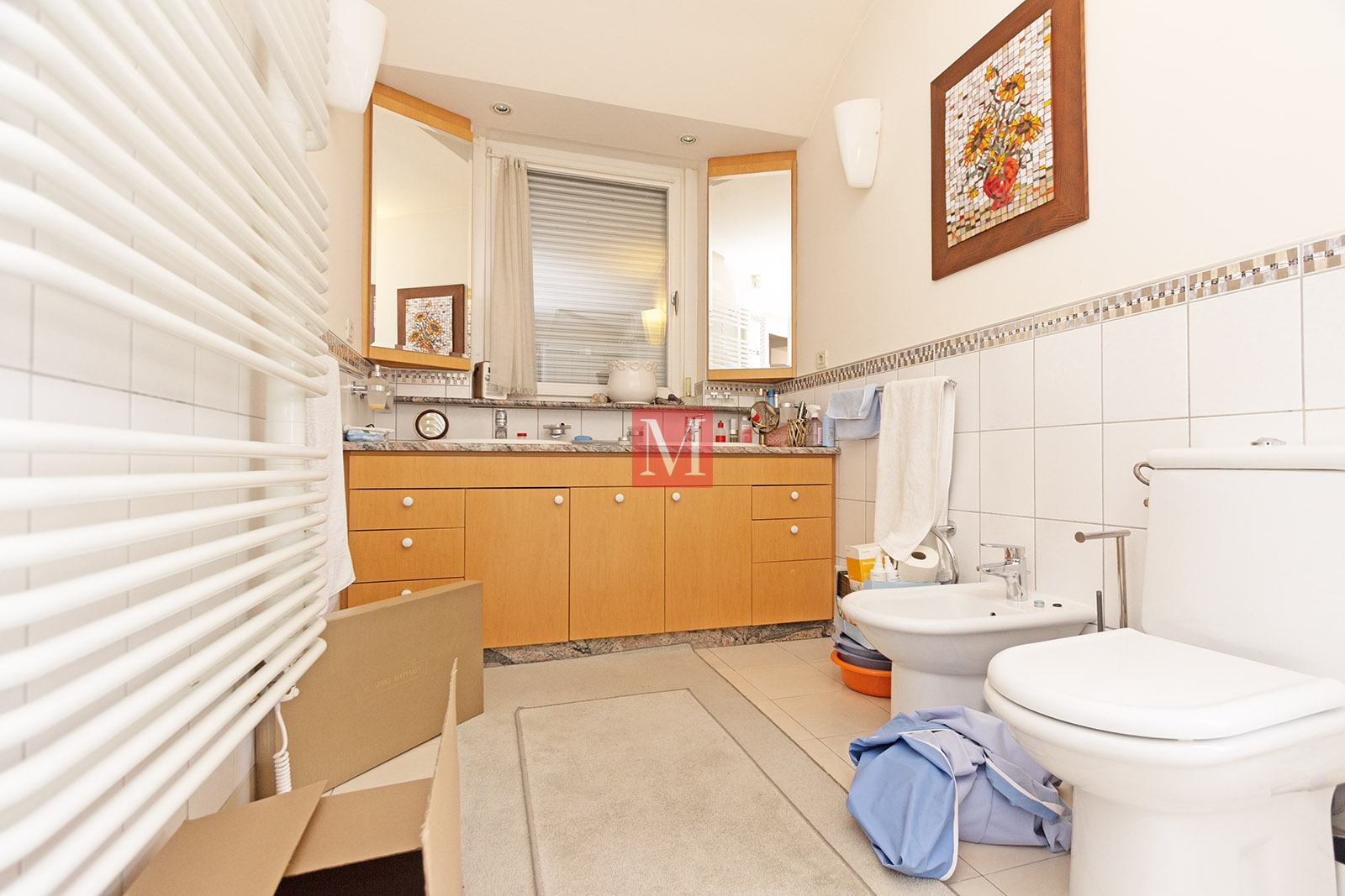 The large apartment (146m2) consists of: an entrance hall, a spacious living room with a dining room and access to a spacious terrace, a separate kitchen with a pantry, a guest toilet, a laundry room, a bedroom, and stairs lead to the first floor consisting of a second bedroom, a wardrobe, a large bathroom (shower) with access to an additional spacious terrace.