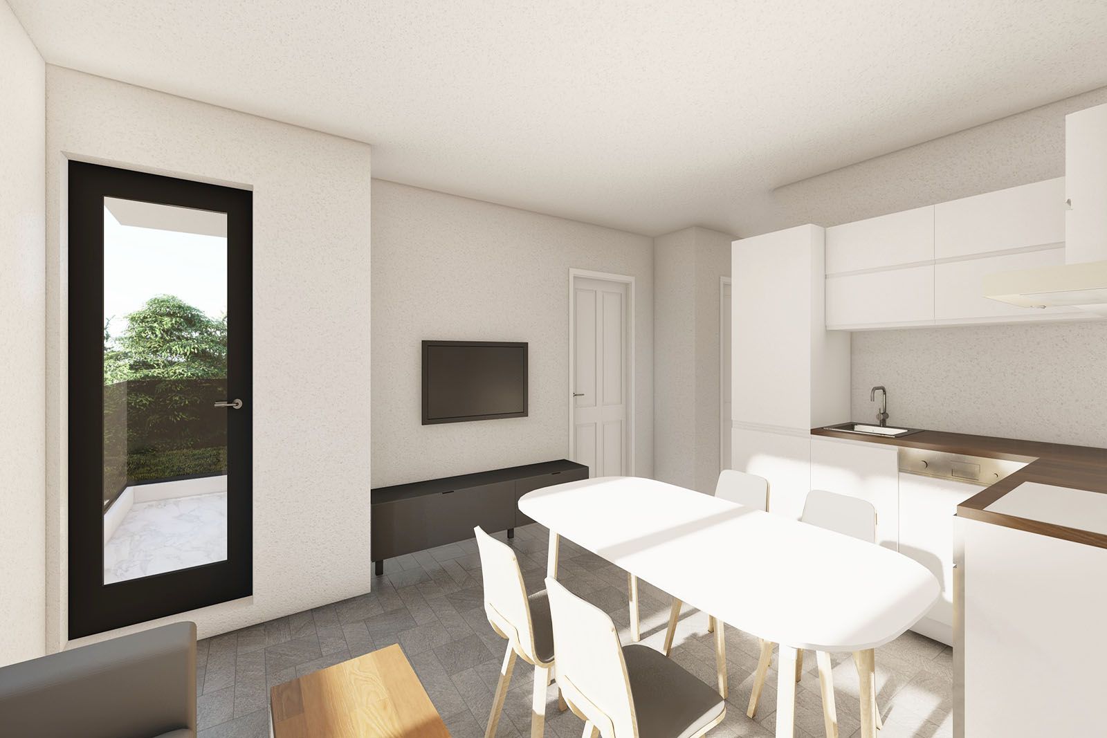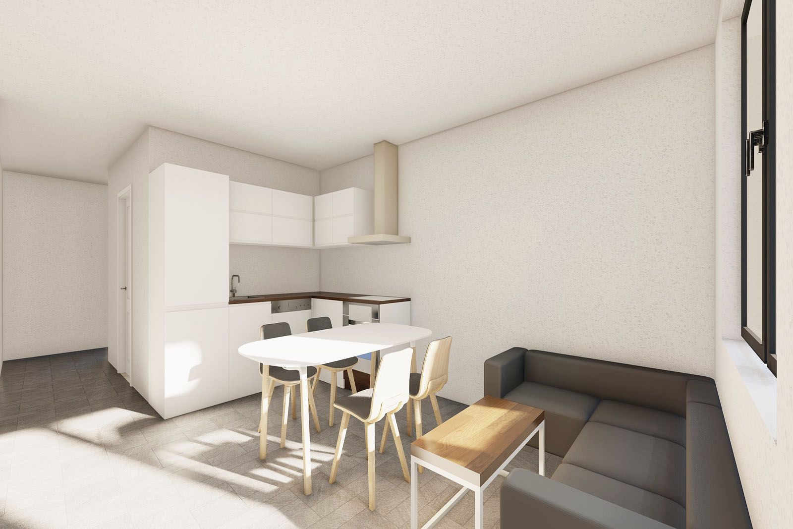 The apartment consists of a living room with dining room and kitchen, two bedrooms, bathroom, balcony and storage room.