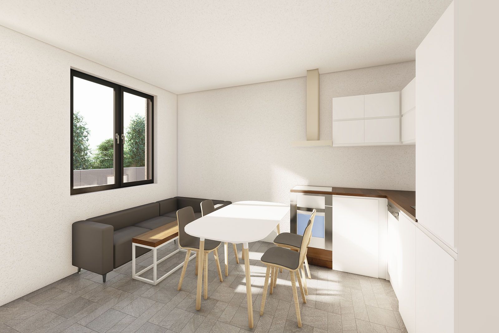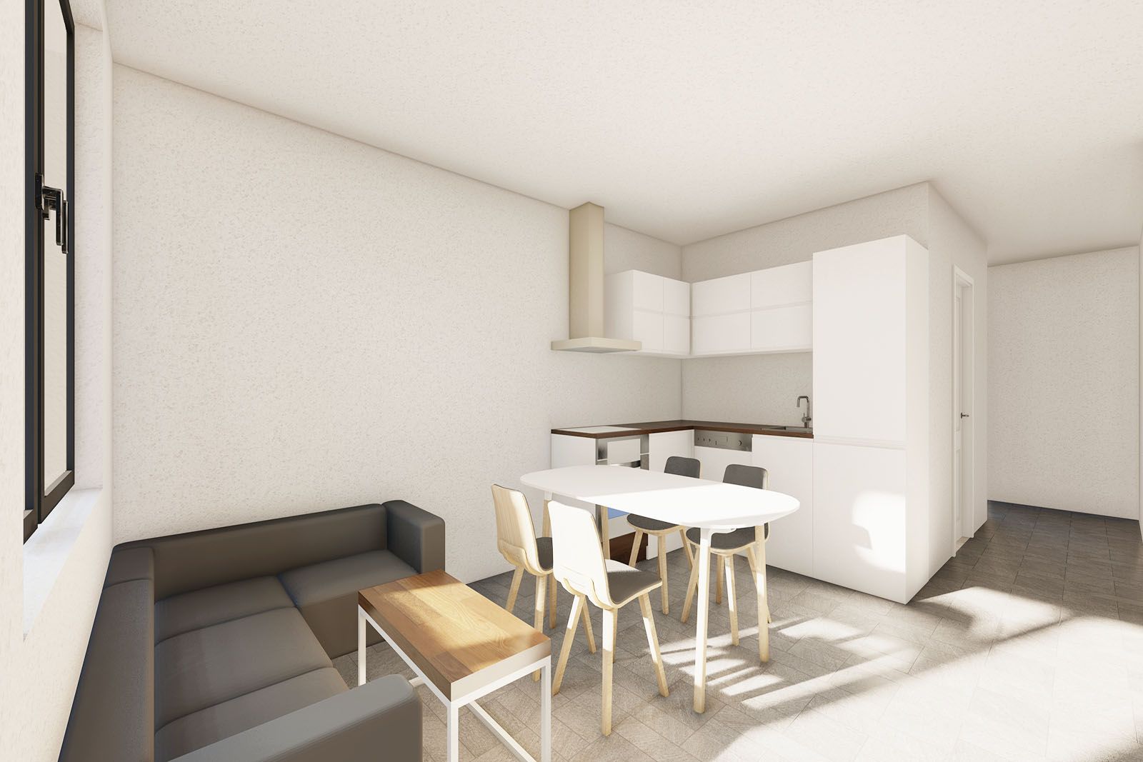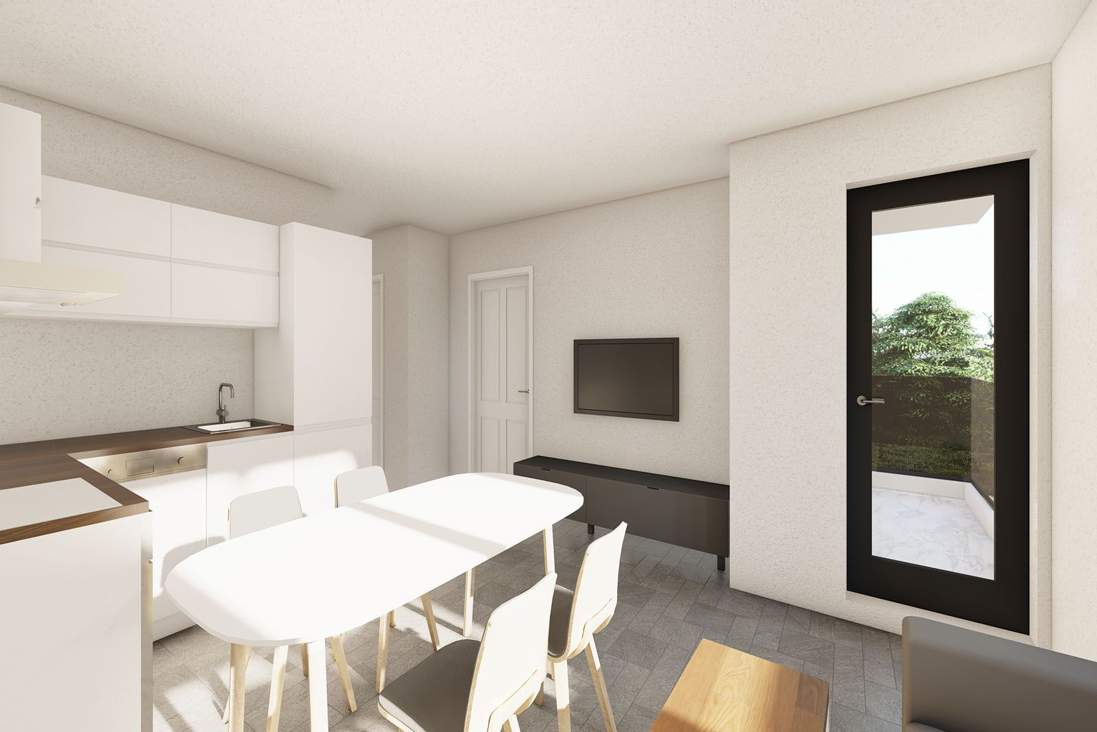 The apartment consists of a living room with dining room and kitchen, two bedrooms, bathroom, utility room, terrace and garden.