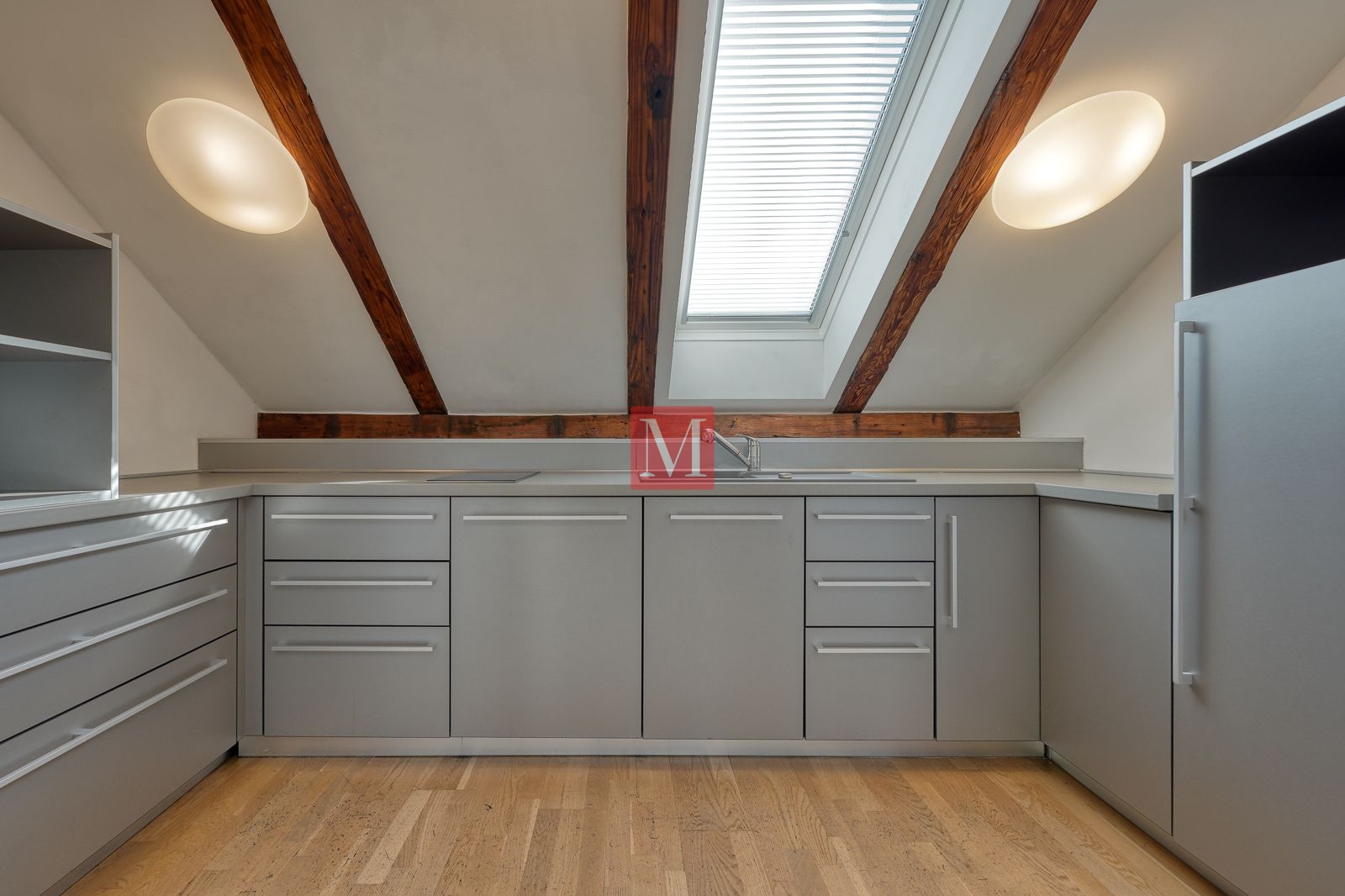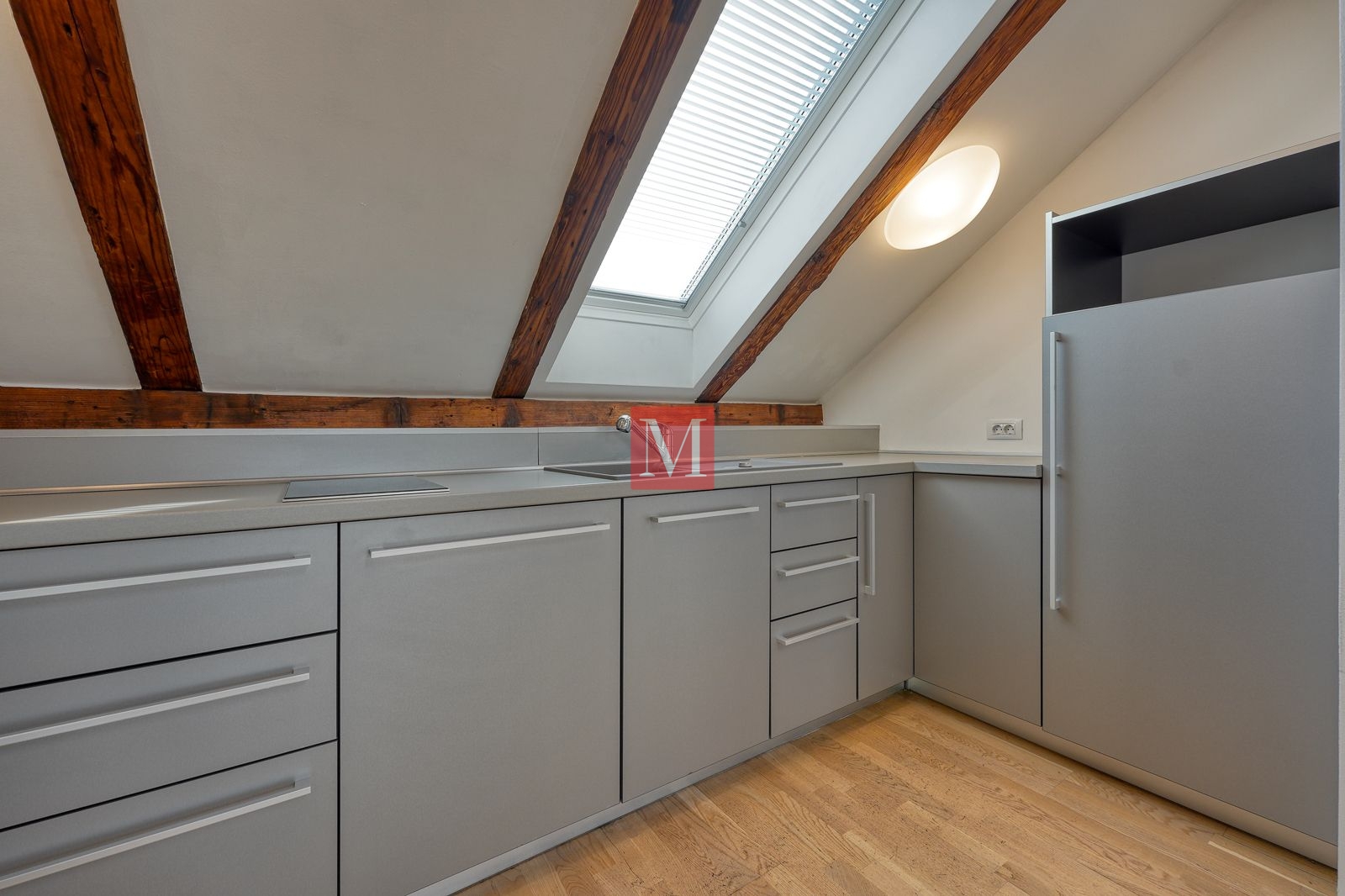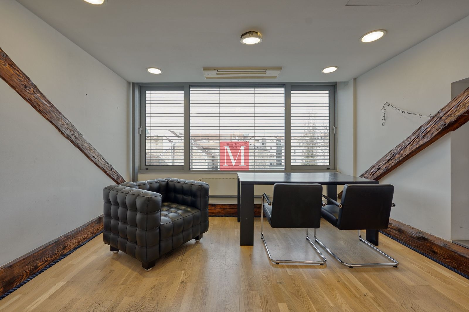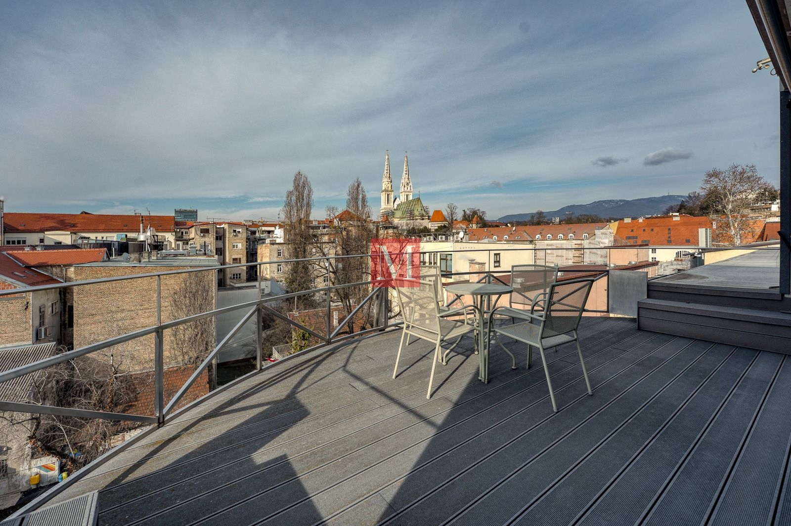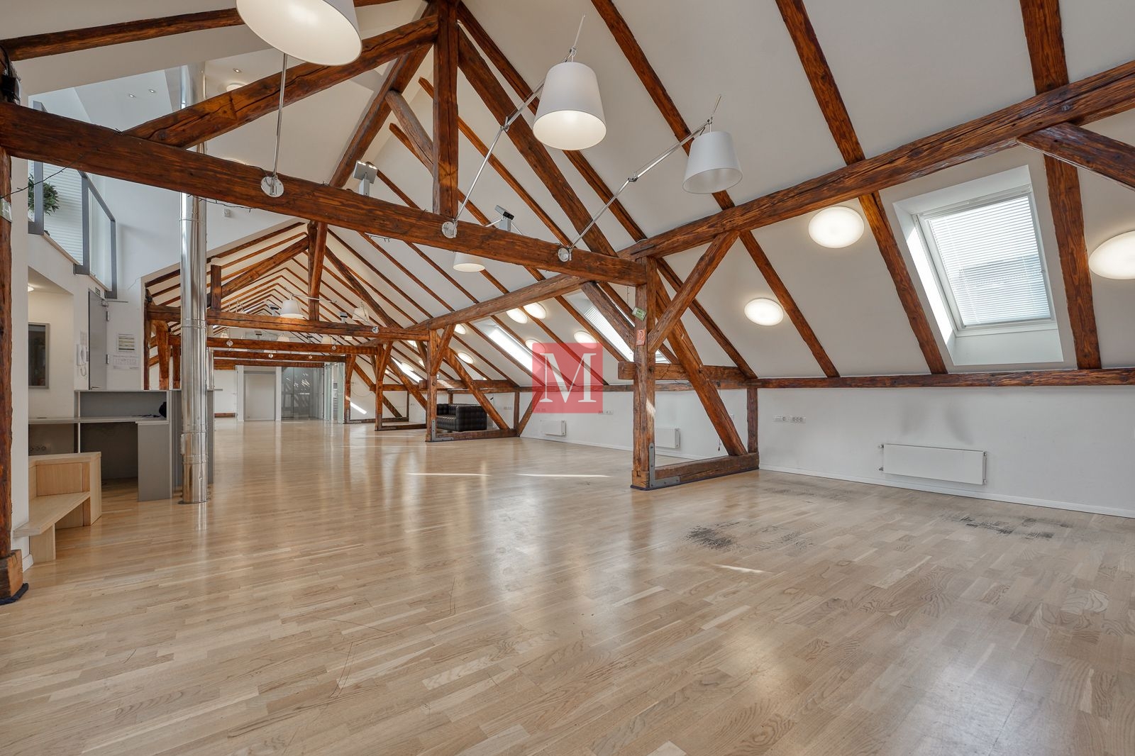 Sastoji se od 4 kancelarije, 2 sanitarna čvora (M/Ž) i spremišta, a sve ostalo je veliki otvoreni prostor od preko 130 m2 s visokim stropovima, velikim staklenim staklenima, osunčan i pun danjeg svjetla. Mirno pozicioniran, prostrana terasa s izvanrednim pogledima prema okolnim zgradama, katedrali i Sljemenu.