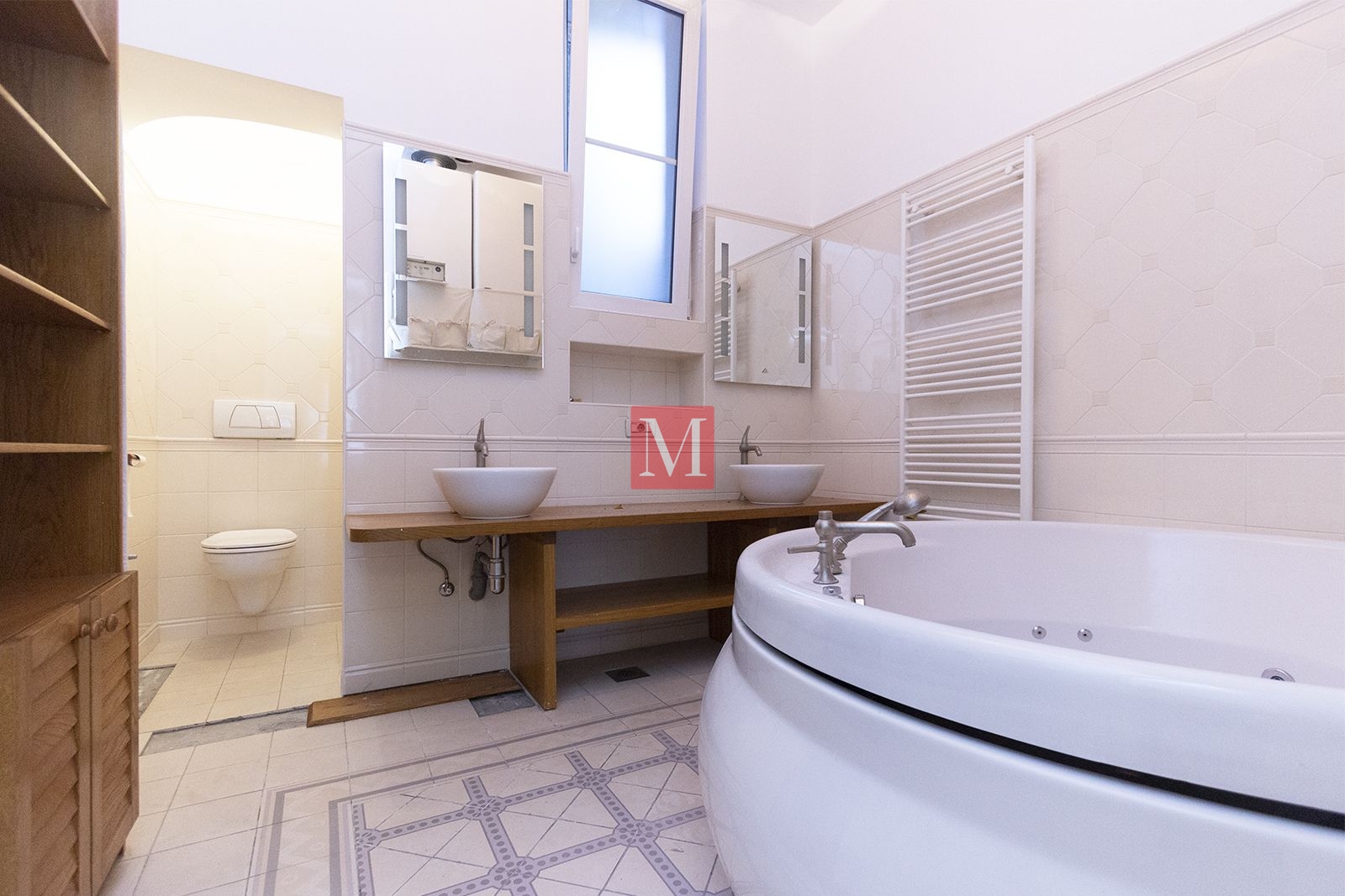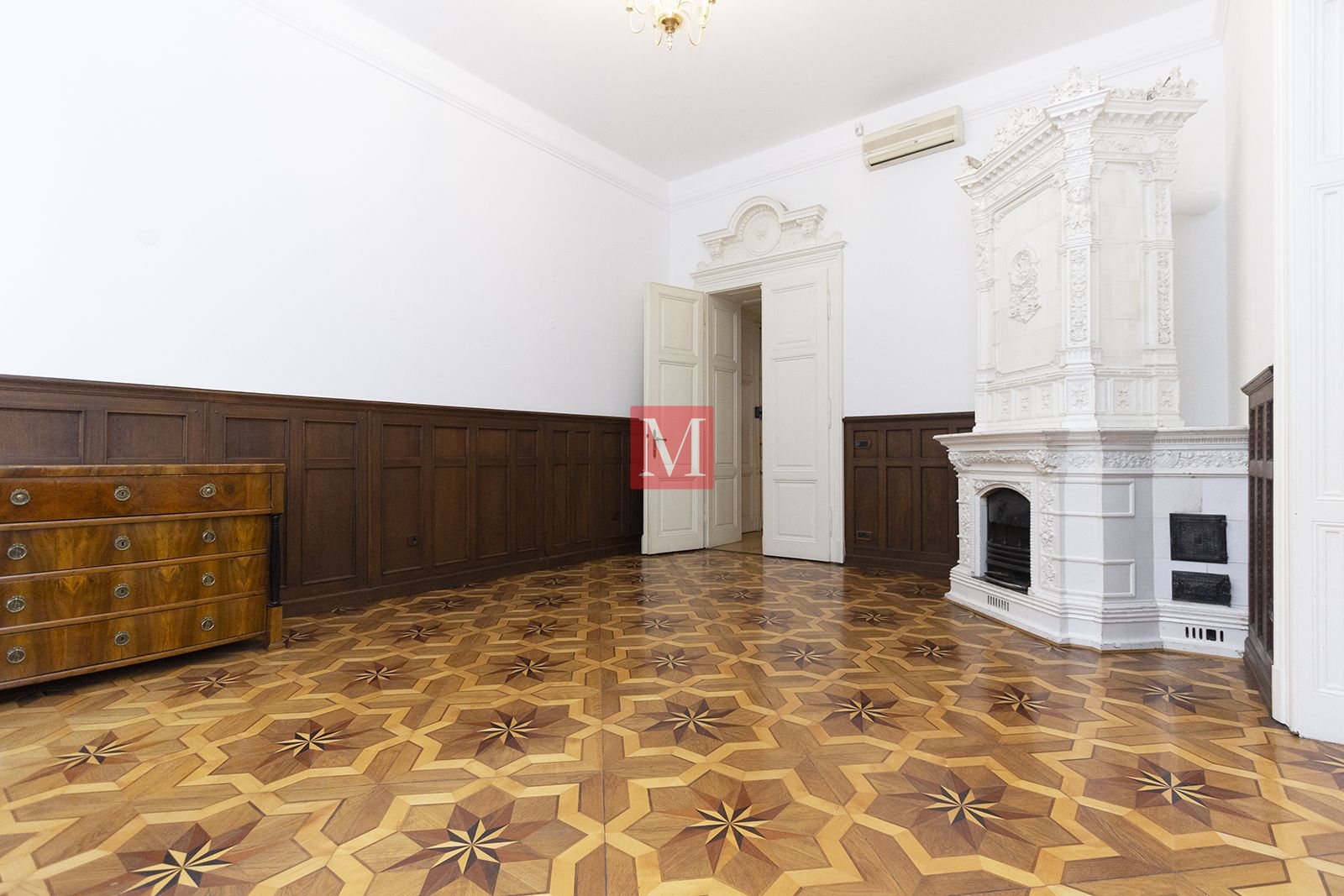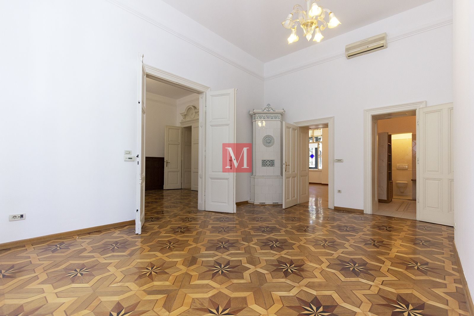Sastoji se od ulaznog hola, 2 predivna salona s kaminima okrenuta na uličnu stranu, velikog salona u centralnom dijelu stana, 2 sobe okrenute na dvorišnu stranu, zatvorene loggie, kuhinje i 2 kupaonice (kada i tuš).