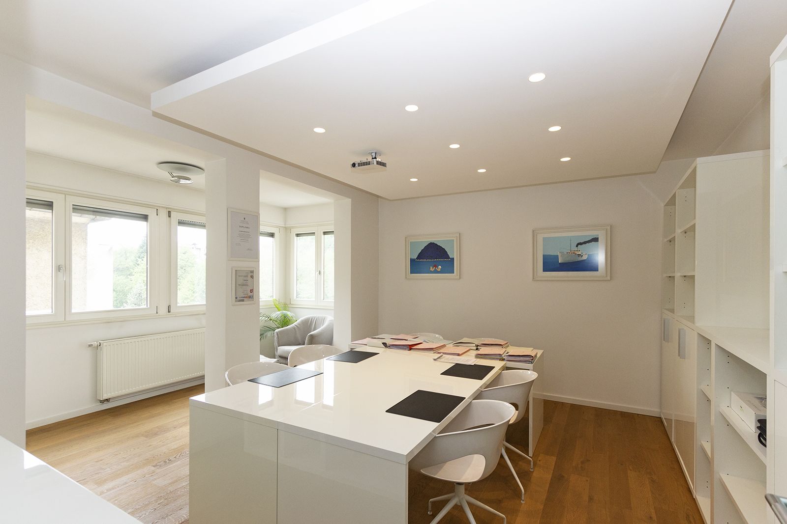 Sastoji se od ulaznog hola s recepcijom, 3 kancelarije, kuhinje i wc-a.