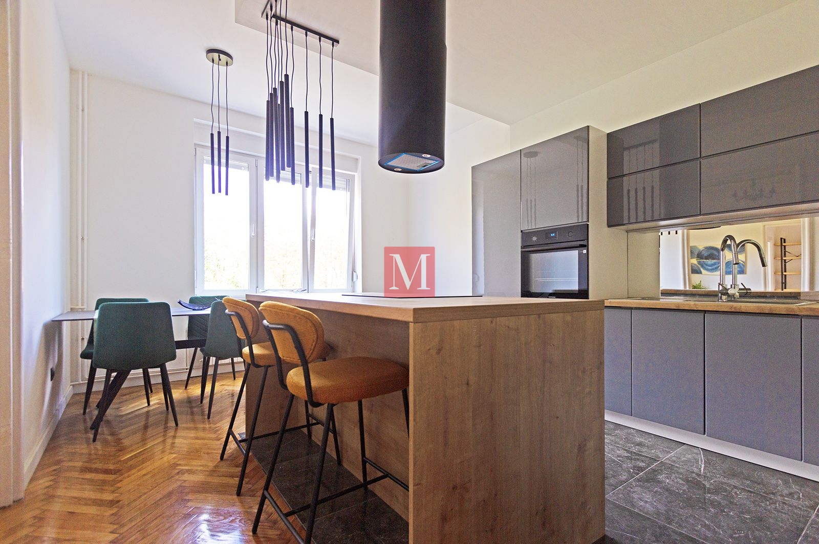 Luksuzan, potpuno uređen 3S stan od 100m2 s loggiama, smješten u atraktivnom dijelu Zagreba – Medveščak, u neposrednoj blizini centra.