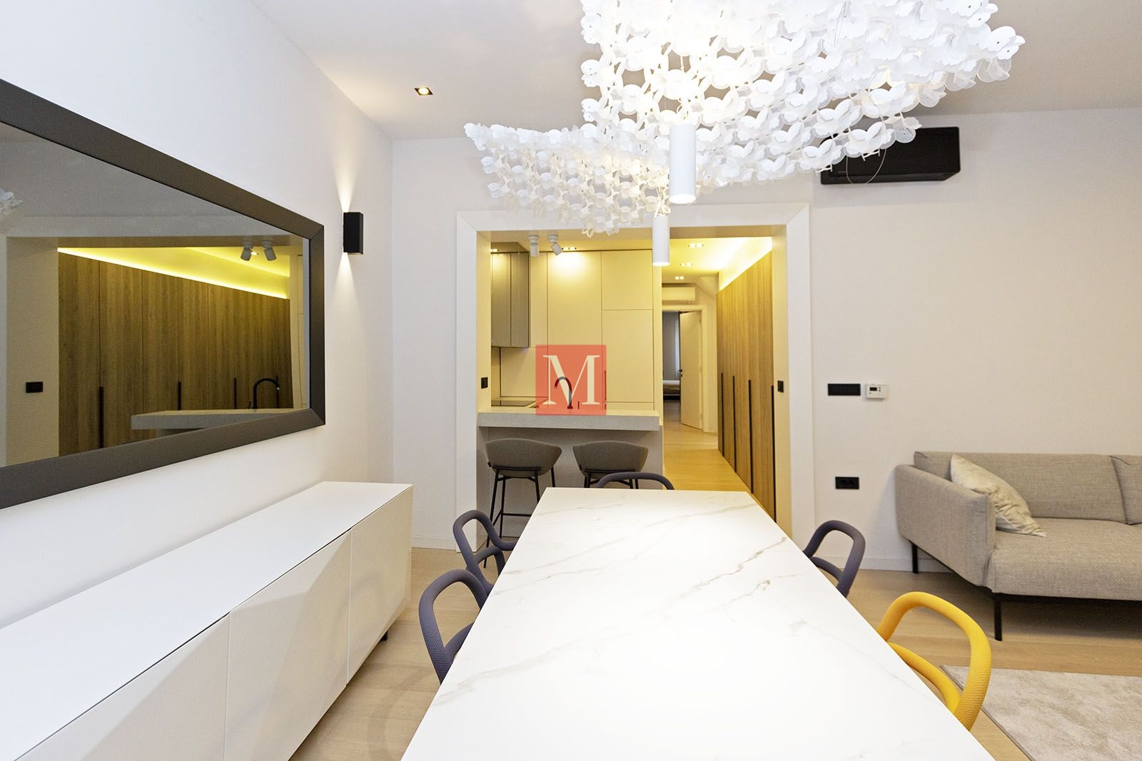 Stan je u potpunosti opremljen svime potrebnim za život, a velika pažnja je dana prilikom dizajniranja, te su tako ugrađeni ormari u cijelom stanu zajedno sa mnogo indirektne rasvjete, uz korištenje najkvalitetnijih materijala.