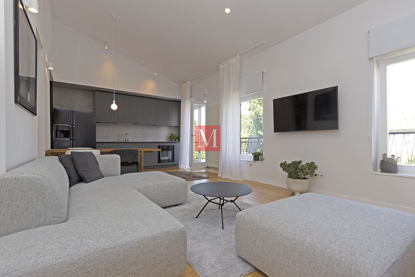 Stan je kompletno novonamješten i vrhunski opremljen (Electrolux i GE aparati, infracrvena sauna, optika, …)