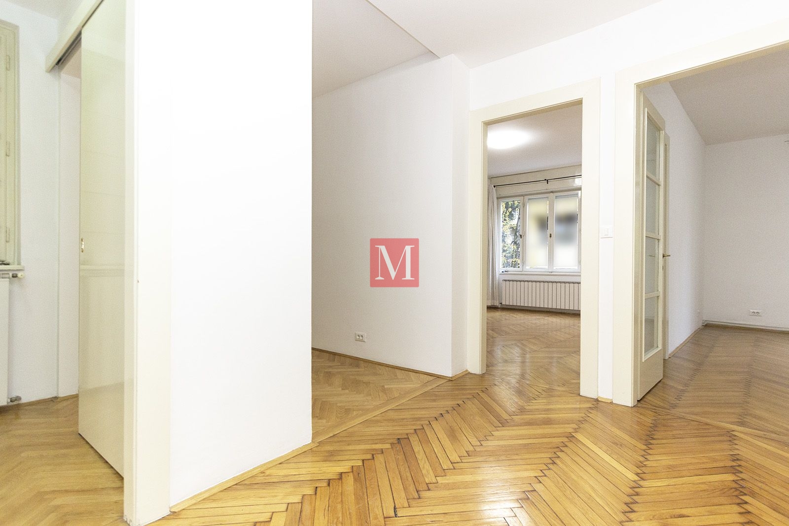 Sastoji se od hodnika, 3 prostrane prostorija, kupaonice, dodatnog WC-a i kuhinje.