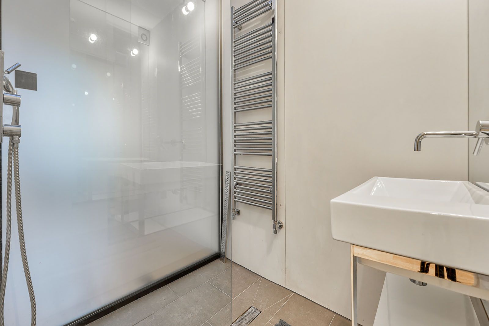 Dio krova je prekriven staklom tako da, uz velike prozore, daje još više svjetlosti, a posebnost je krov u staklu iznad tuš-kabine.