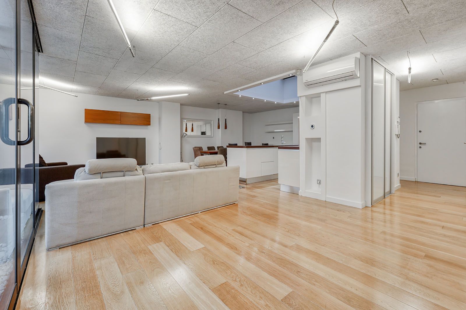 Sastoji se od ulaznog hodnika, velikog open space dnevnog boravka sa kuhinjom, blagovaonicom i izlazom na loggiu, master spavaće sobe sa garderobom, kupaonicom (tuš) i loggiom, 2 spavaće sobe, radne sobe, kupaonice (kada) i gostinjskog wc-a.