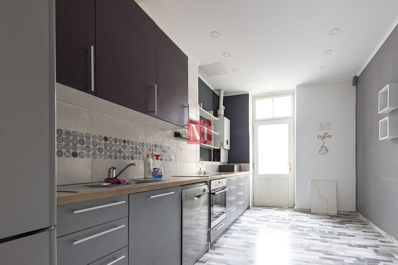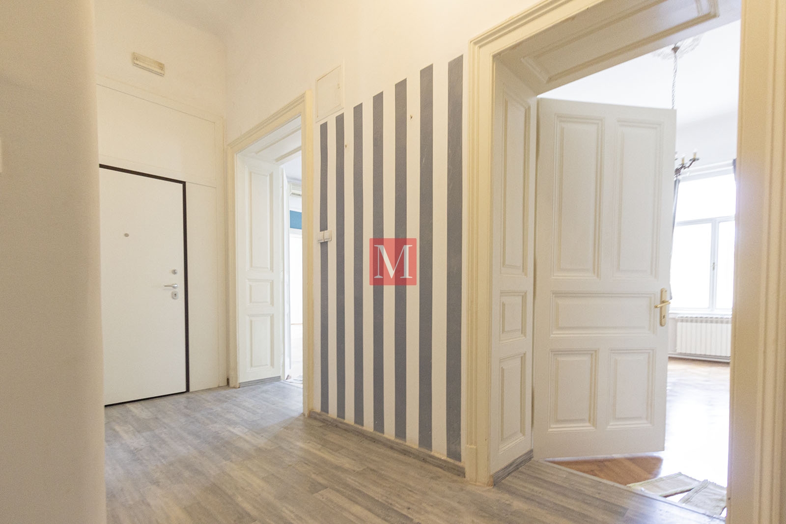 Stan se sastoji od ulaznog hodnika, tri prostrane sobe od kojih jedna izlazi na balkon koji gleda na ulicu, nakon toga kuhinja, koja također ima balkon, koji gleda na unutrašnjost zgrade, te jedna kupaonica i jedan toalet.