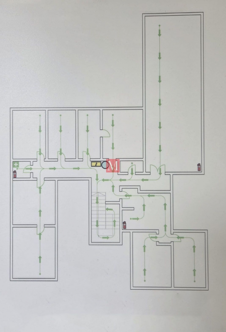 Sastoji se od predprostora, hodnika, 7 ureda, velike prostorije za ured/sastanke/arhivu, čajne kuhinje, sanitarnih prostorija i jednog parkirnog mjesta u dvorištu.