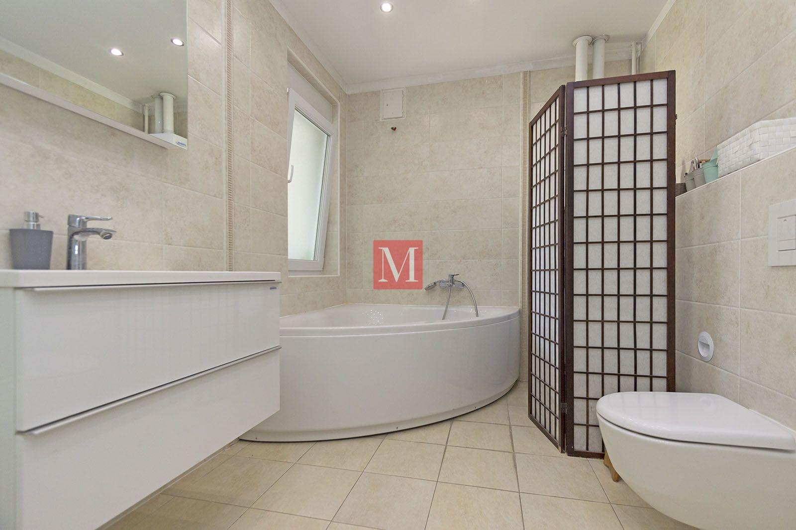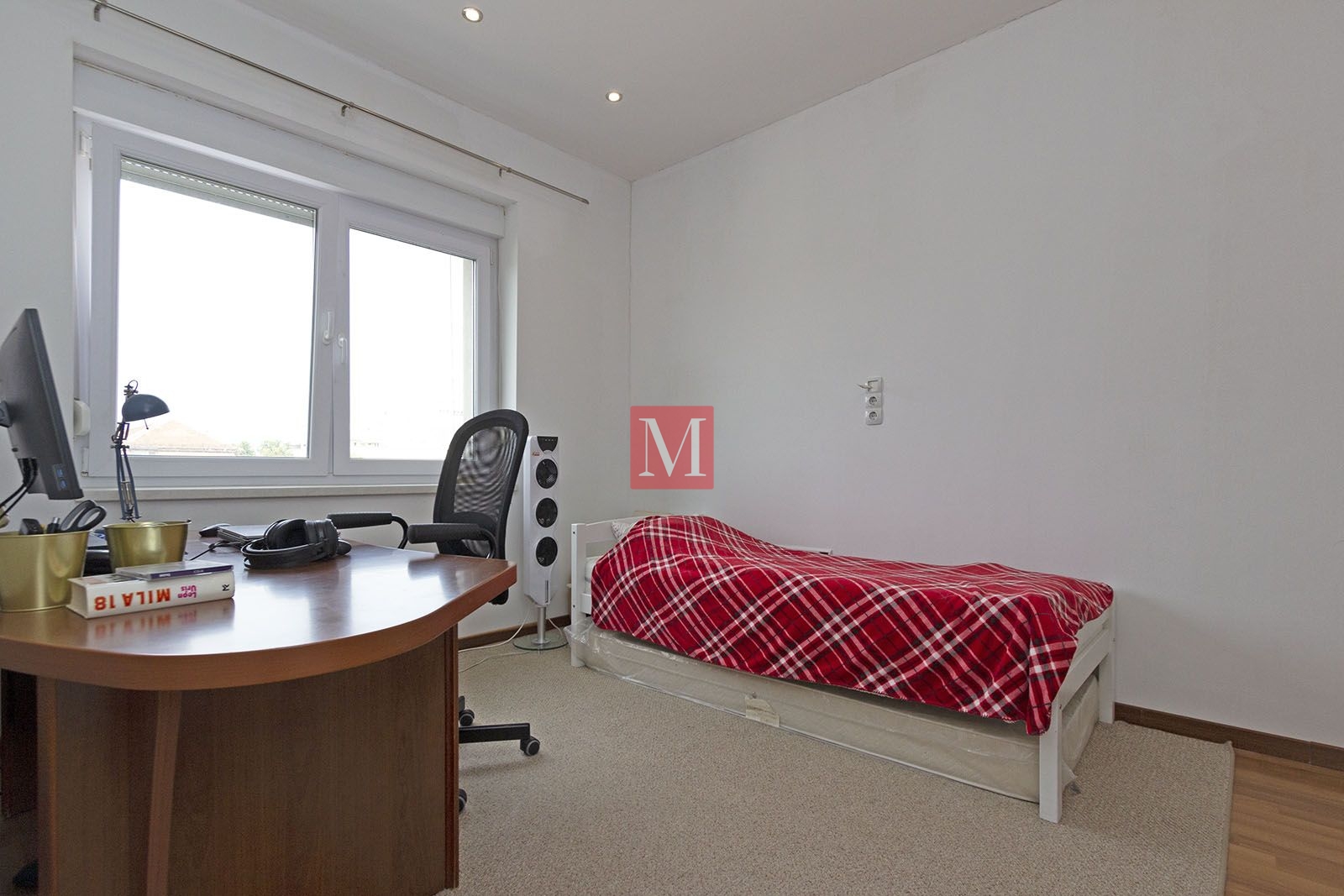 Sastoji se od prostranog ulaznog hodnika, kuhinje s blagovaonicom, dnevnog boravka, 4 spavaće sobe od kojih je jedna trenutno u funkciji 2 boravka a druga radne sobe, 2 kupaonice (tuš i kada) i balkona s pogledom na dvorišnu stranu.