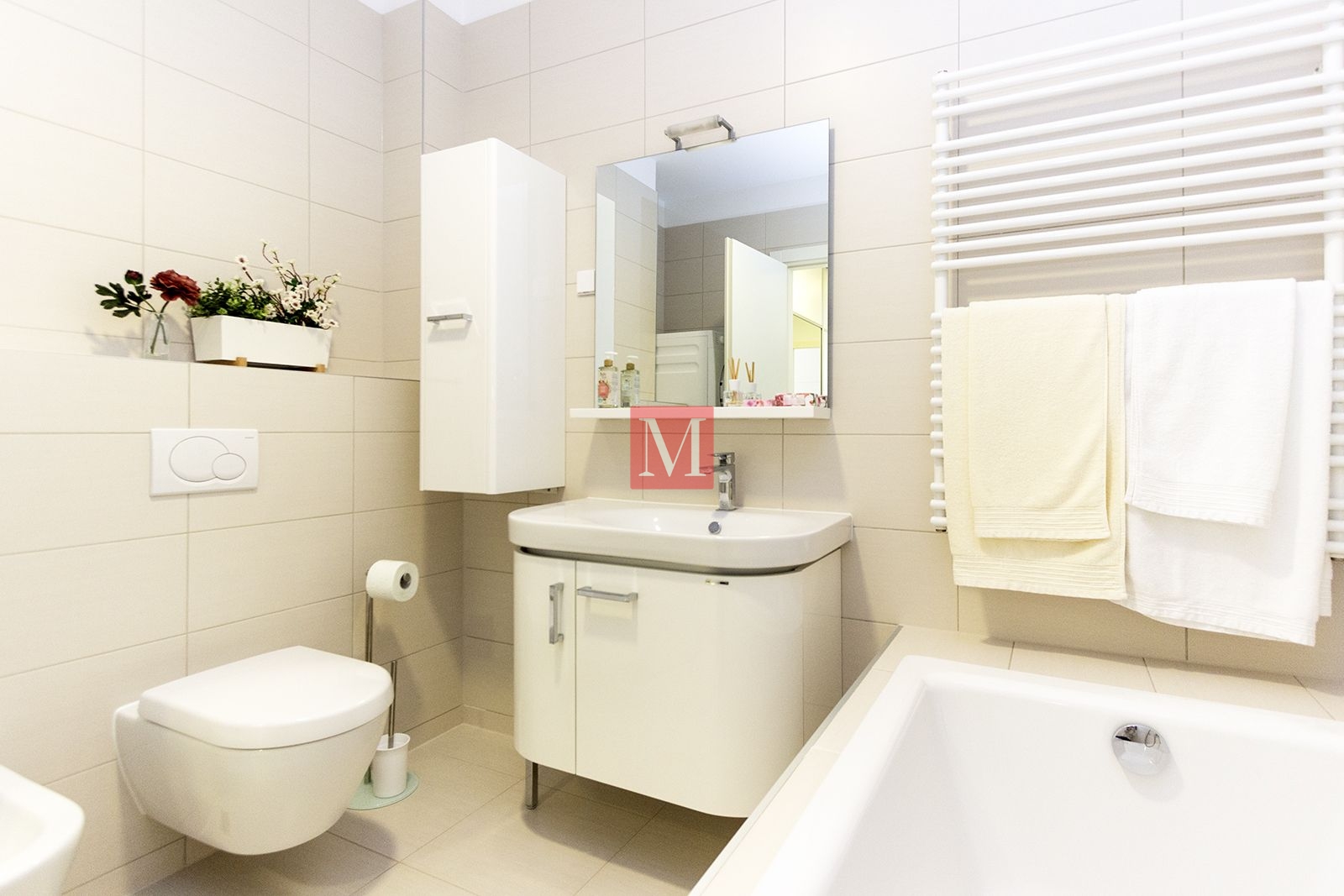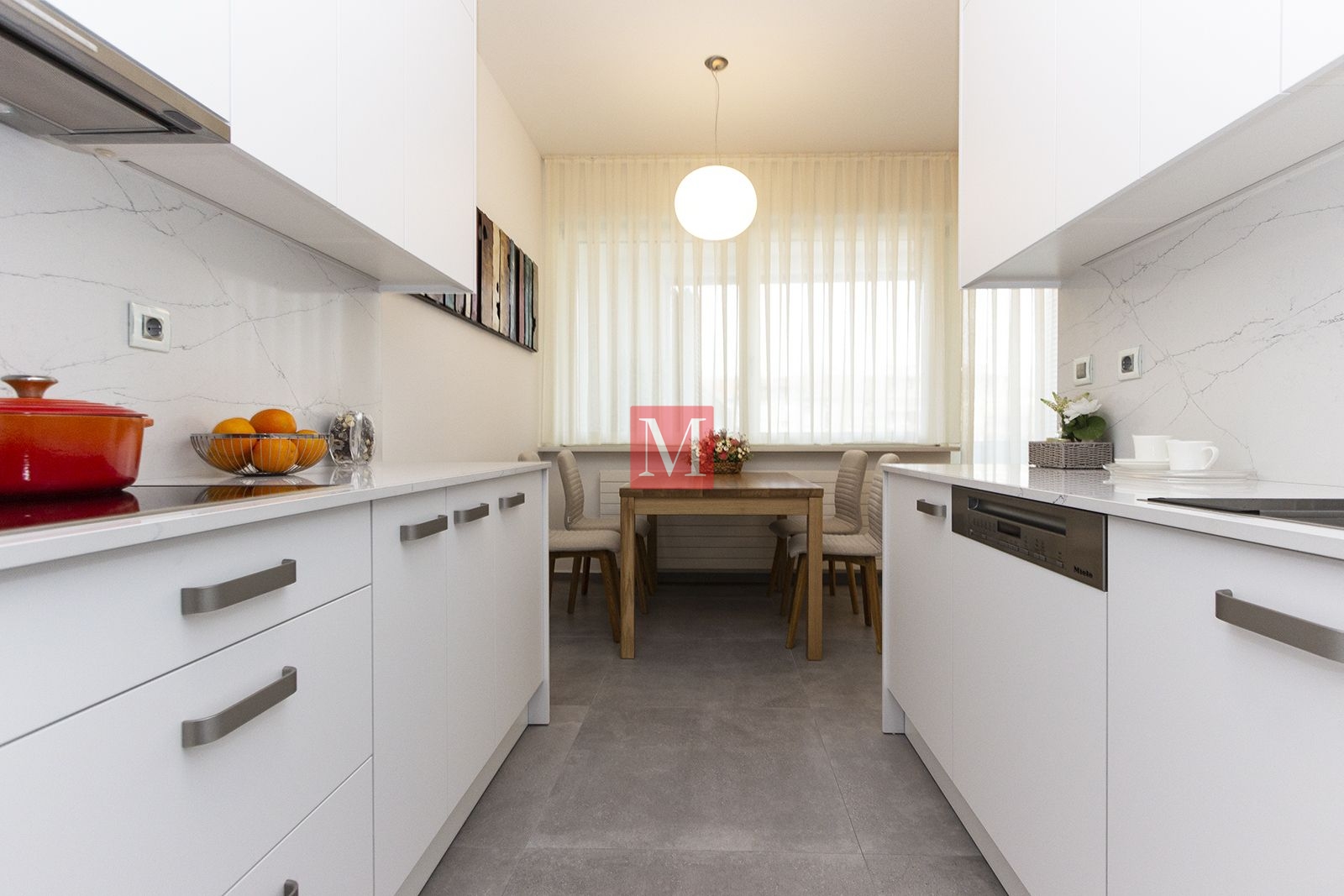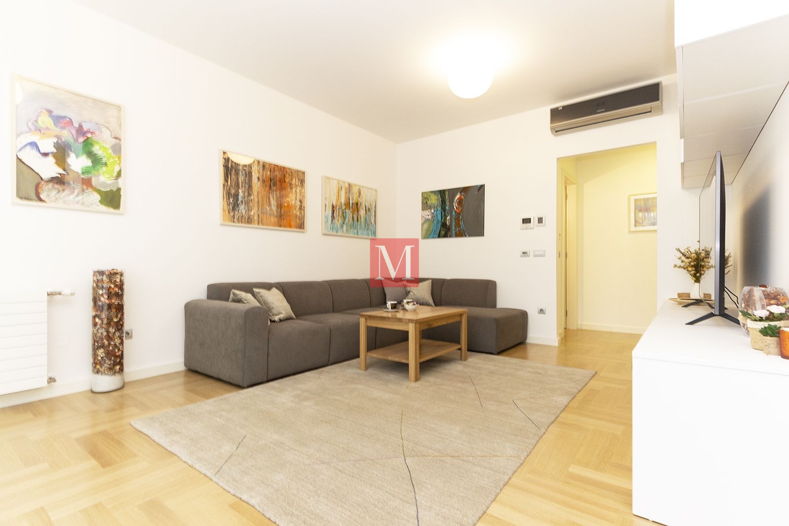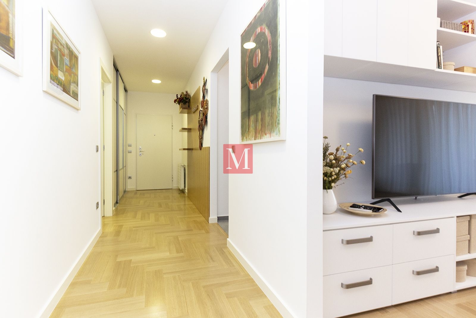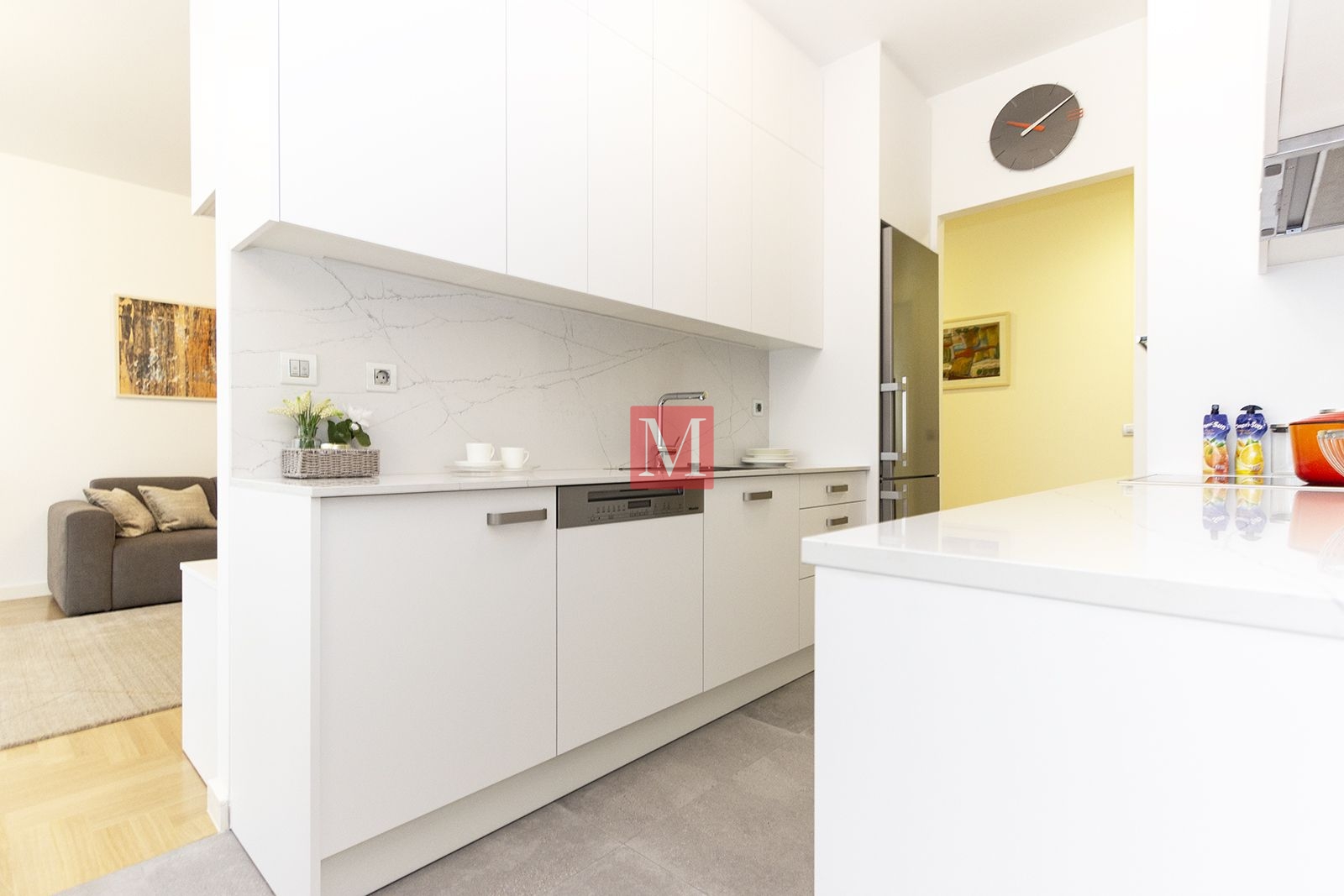 Sav namještaj u stanu je dizajnerski, custom made. Smart house, ima 4 klima jedinice, podno grijanje u kupaonicama, elektrtične rolete, rasvjetna tijela-Murano staklo, vrhunsku bijelu tehniku i potpuno opremljenu kuhinju.
