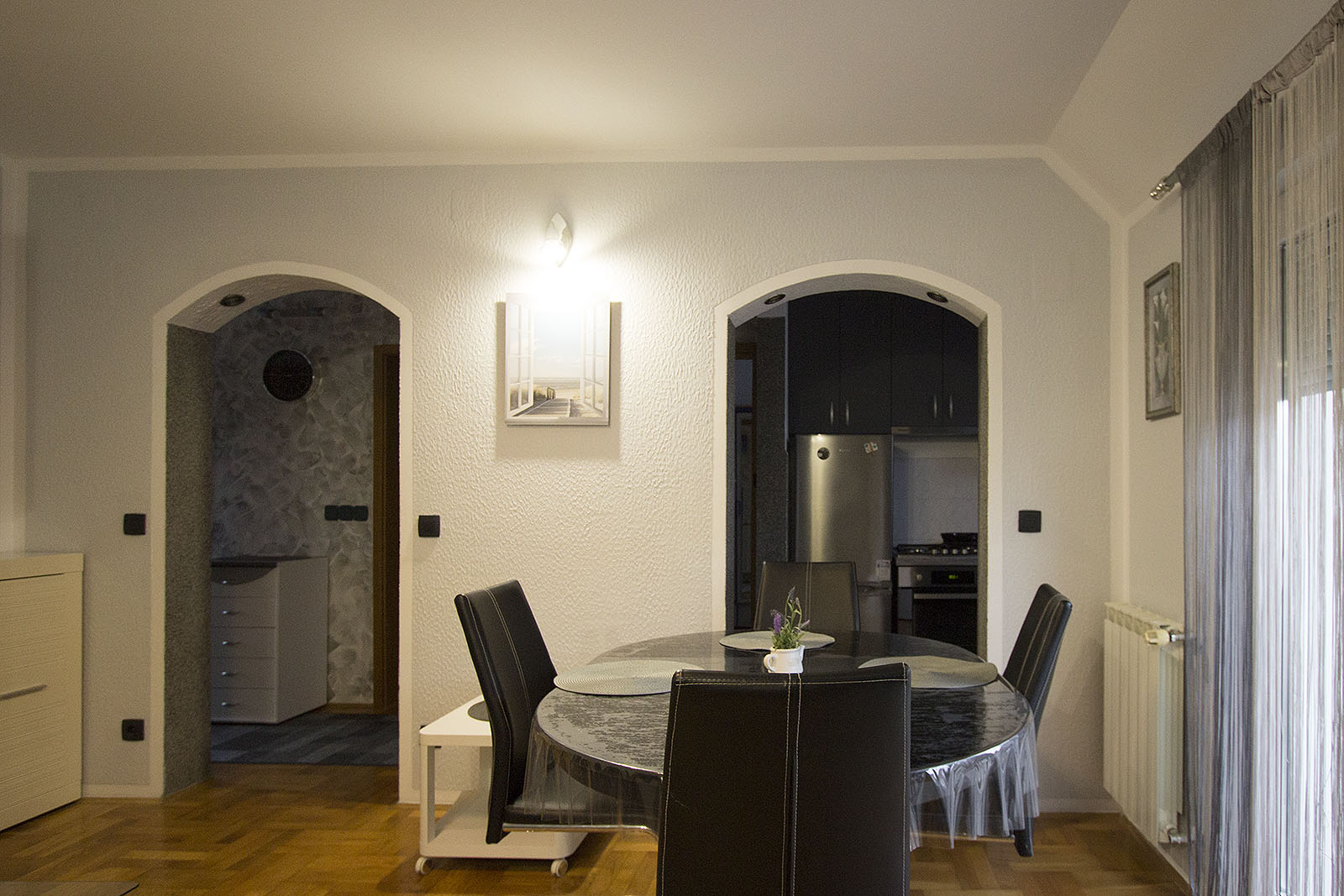 Stan se sastoji od ulaznog hodnika, dvije odvojene spavaće sobe, dnevnog boravka sa blagovaonicom, kuhinje, kupaonice te dva balkona.