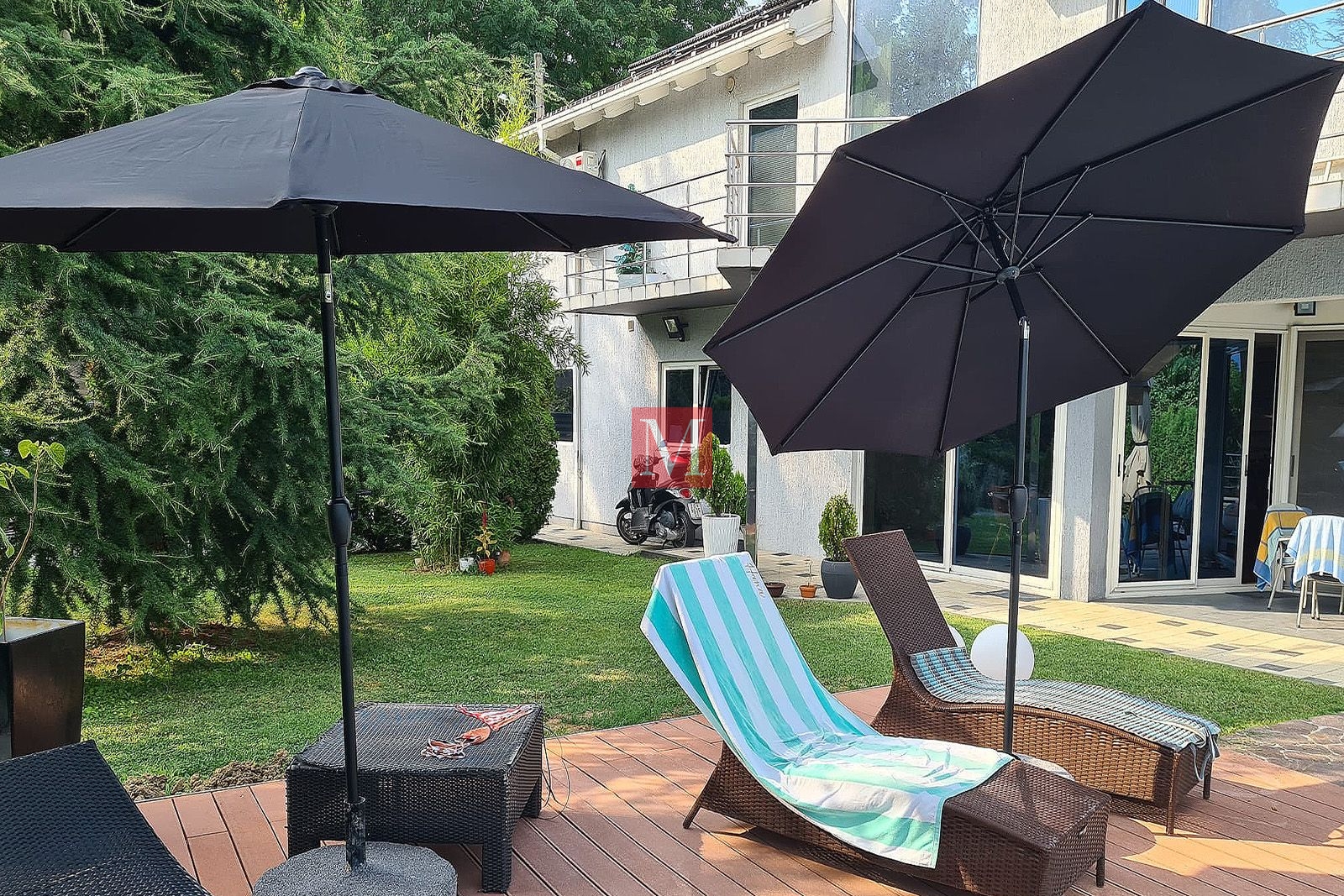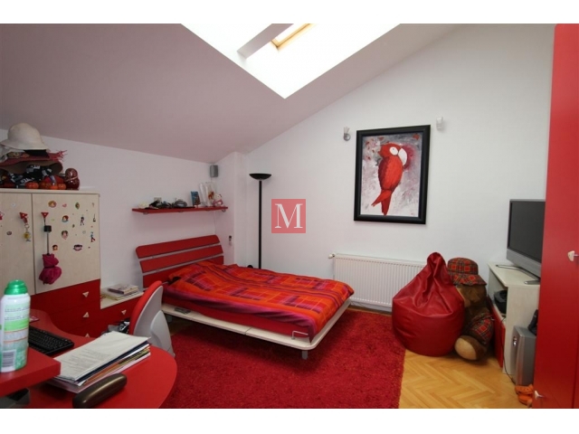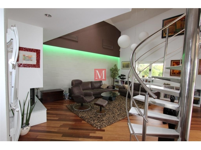 Kuća je vrlo privatna i zatvorena od pogleda prema susjedima, ima nekonvencionalan i atipičan layout, iznimno visoke stropove u dnevnom boravku, uz dizajnersko uređenje interijera u kojem je promišljen svaki detalj, te vrlo lijepu i njegovanu okućnicu s biljkama i raslinjem koje pojačava dojam posebnosti i atraktivnosti.