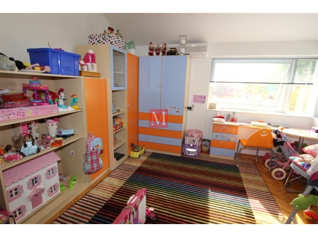 Razvedena je u 2 etaže. U prizemlju je ulazni hol, kuhinja, prostran dnevni boravak s kaminom i blagovaonskim separeom, te izlazom na terasu i vrt, radna soba, wc, gospodarska prostorija i kotlovnica. Na katu su 3 spavaće sobe, 2 kupaonice i balkoni.