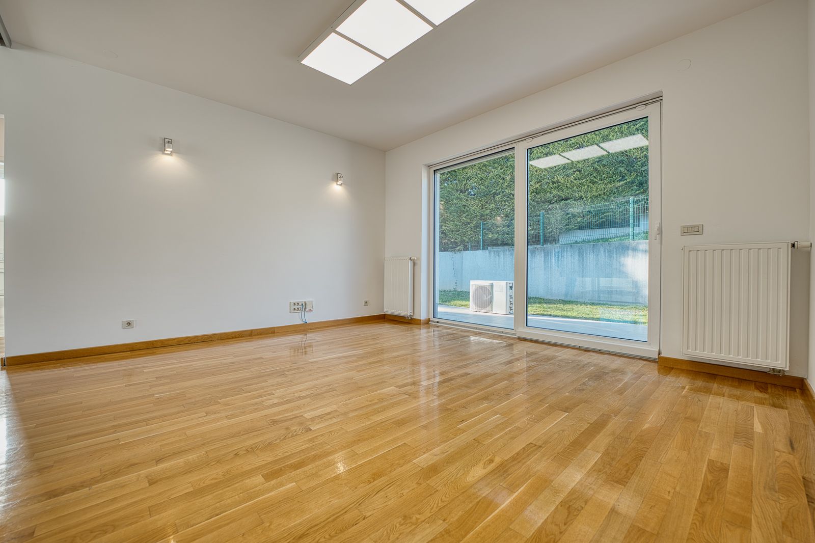 Zgrada se satoji od vrta(538m2) te ukupno tri garažna mjesta(64m2) te tri vanjska parkirališta(37,50m2).