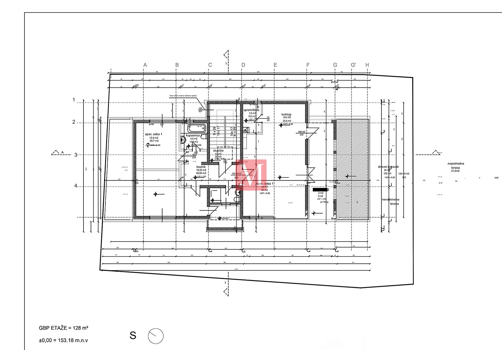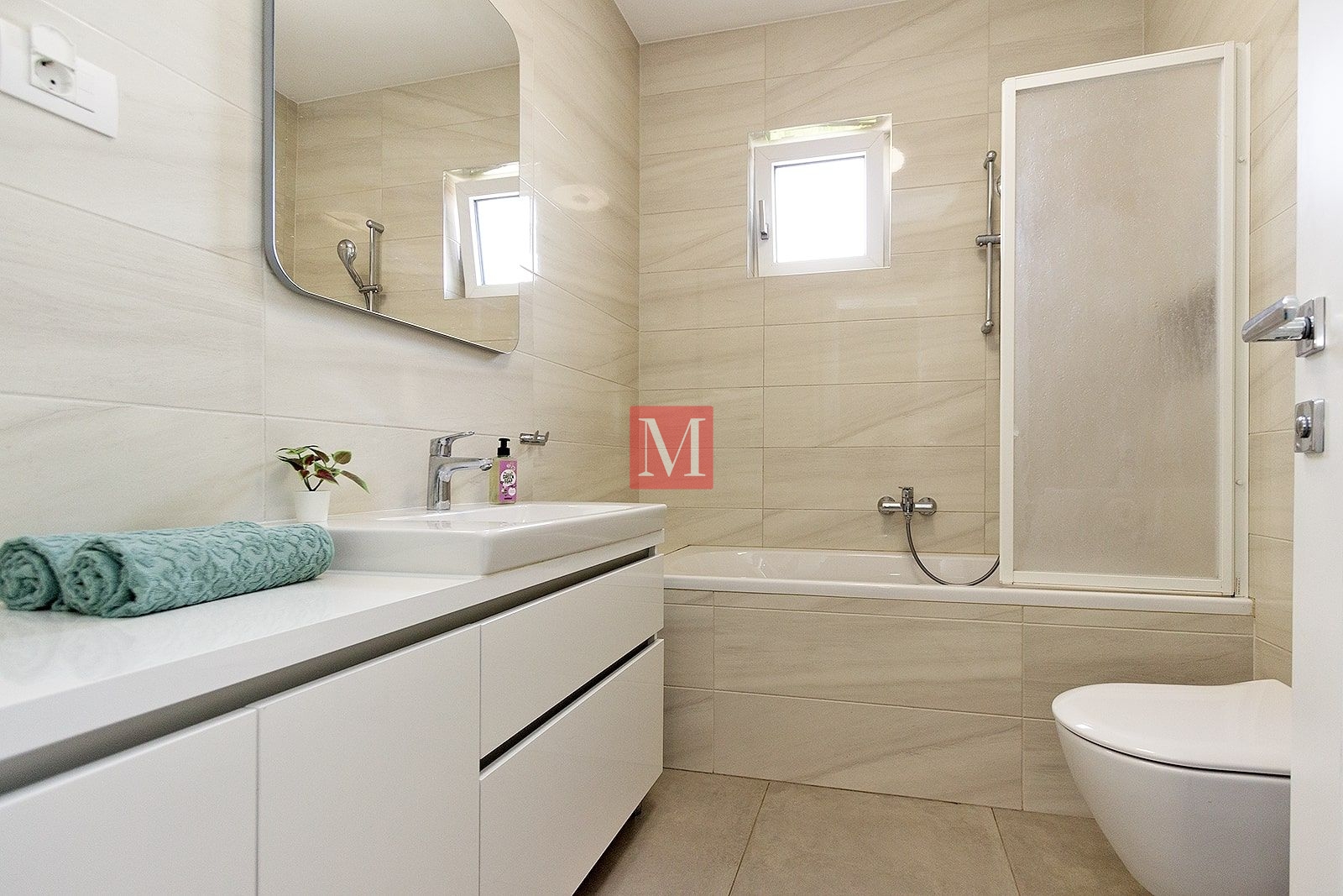 Sastoji se od ulaznog hodnika, open space dnevnog boravka s blagovaonskim dijelom, kuhinjom s ostavom i izlazom na veliku terasu (42m2), 2 spavaće sobe i 2 kupaonice (tuš i kada).