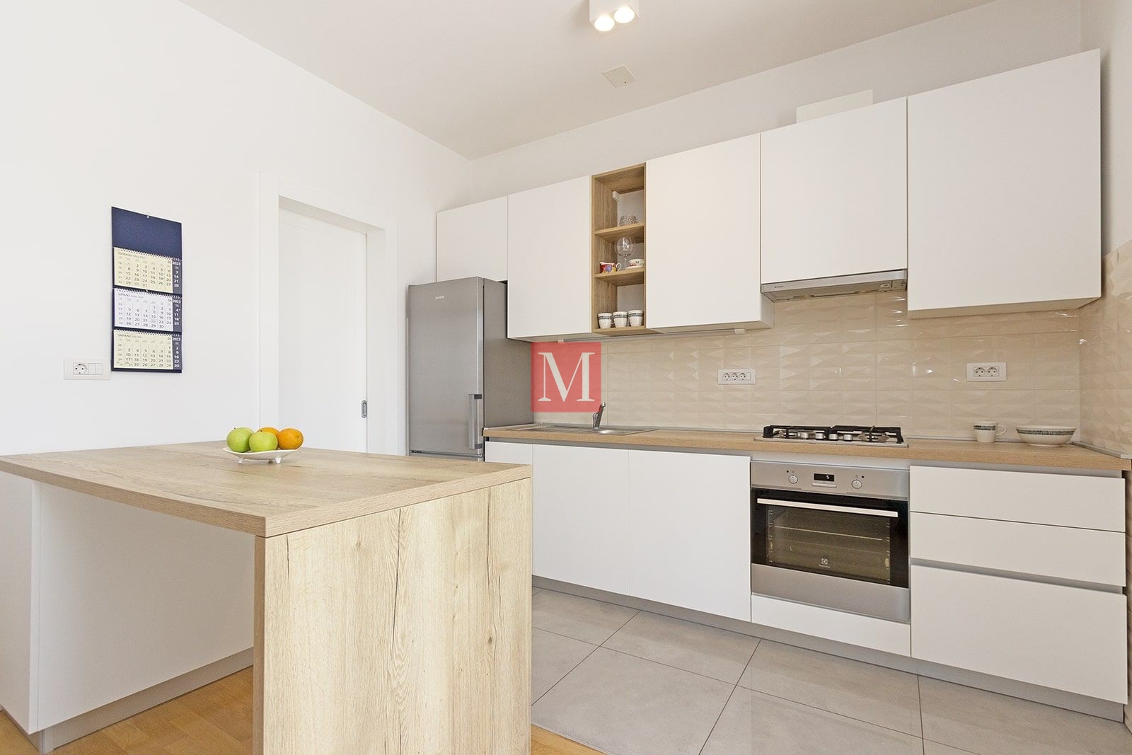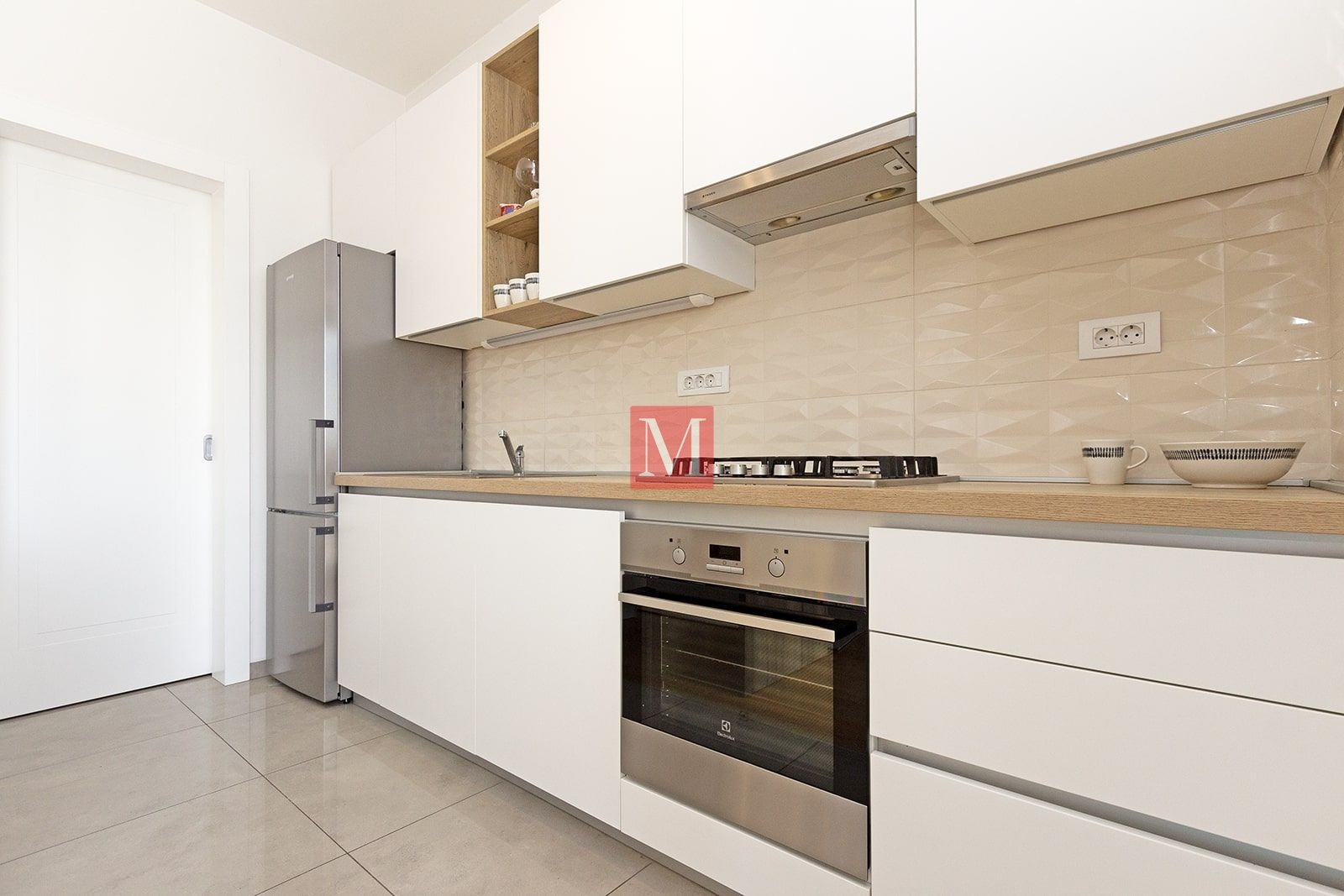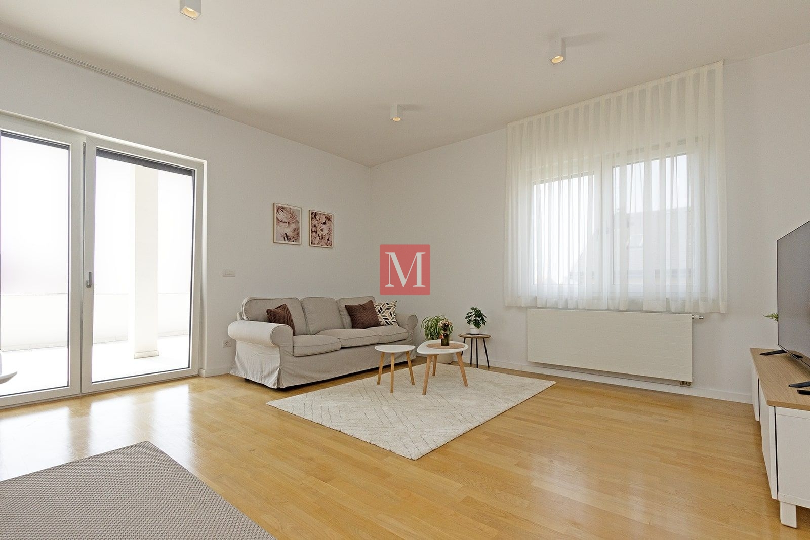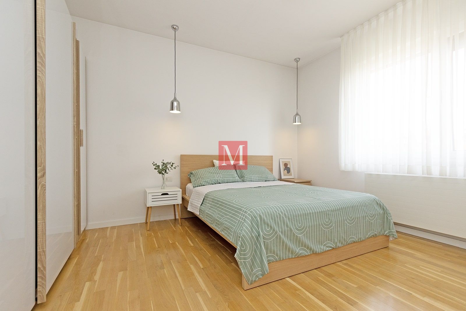 Stan ima novu luksuznu opremu (Villeroy & Boch sanitarije, Electrolux kuhinjski aparati, hrastov parket, el. podizači roleta, ugradbeni ormari rađeni po mjeri etc.) i iznajmljuje se kompletno namješten.