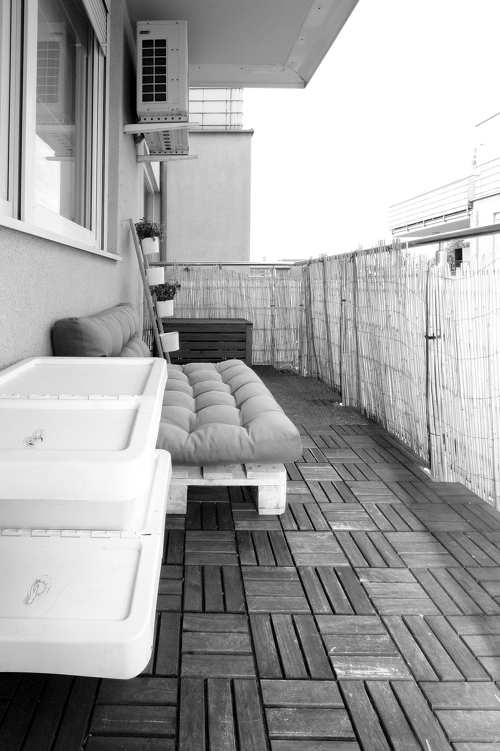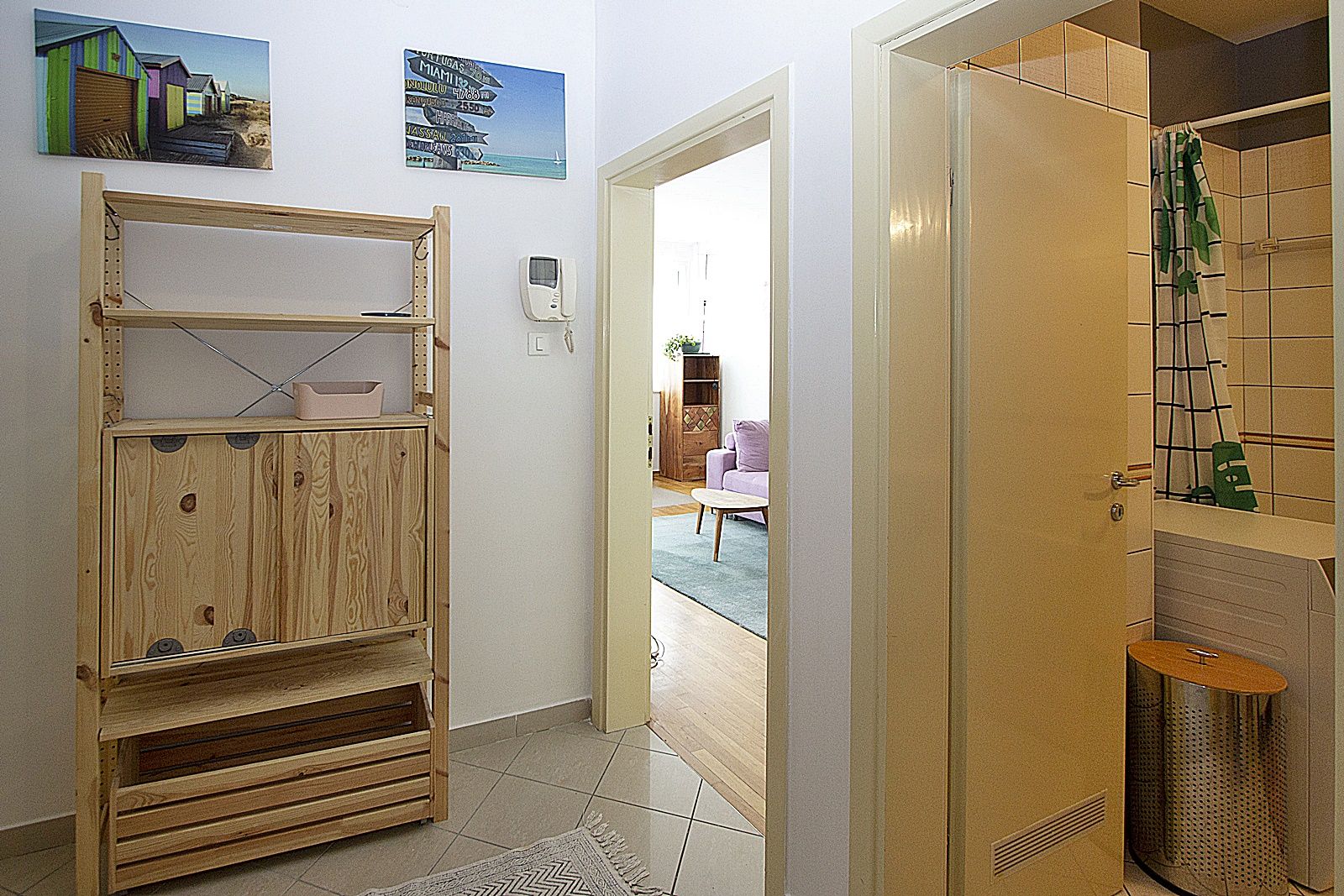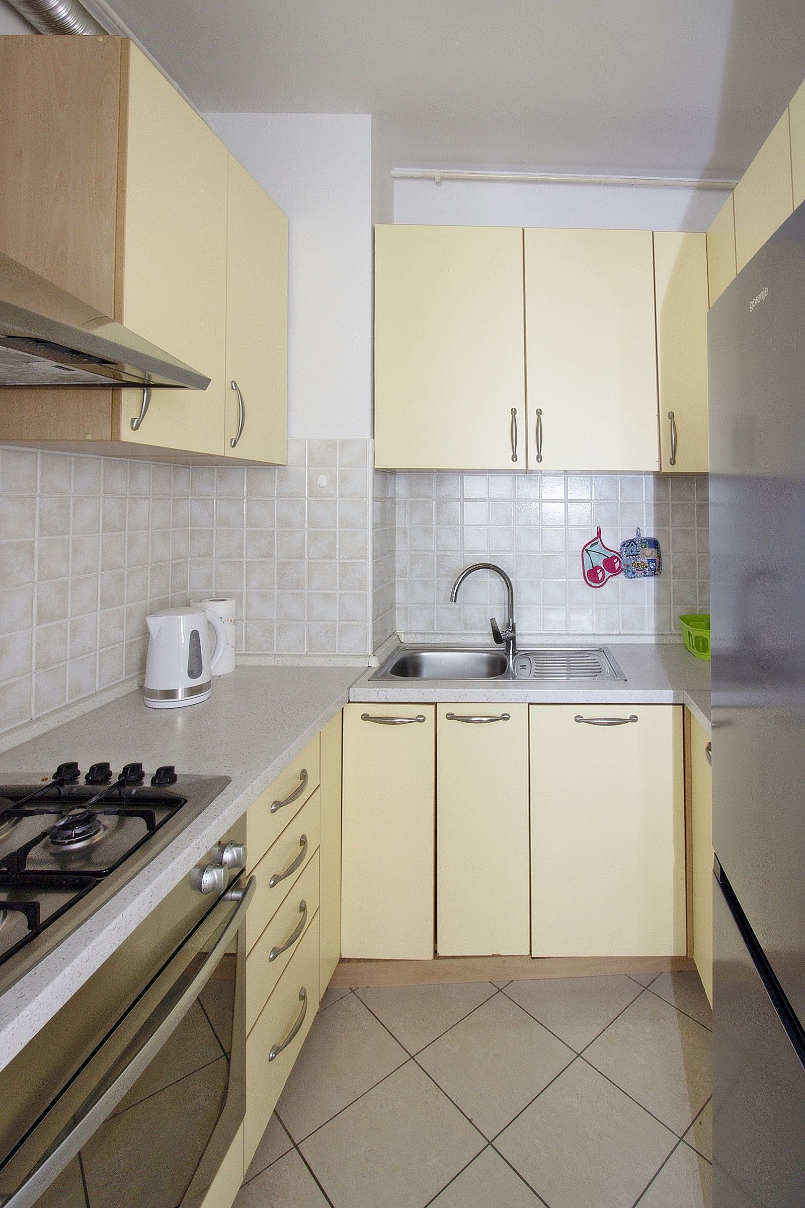 Sastoji se od hodnika, kuhinje, dnevnog boravka s blagovaonicom i izlazom na balkon, spavaće sobe, spremišta i kupaonice s wc-om.