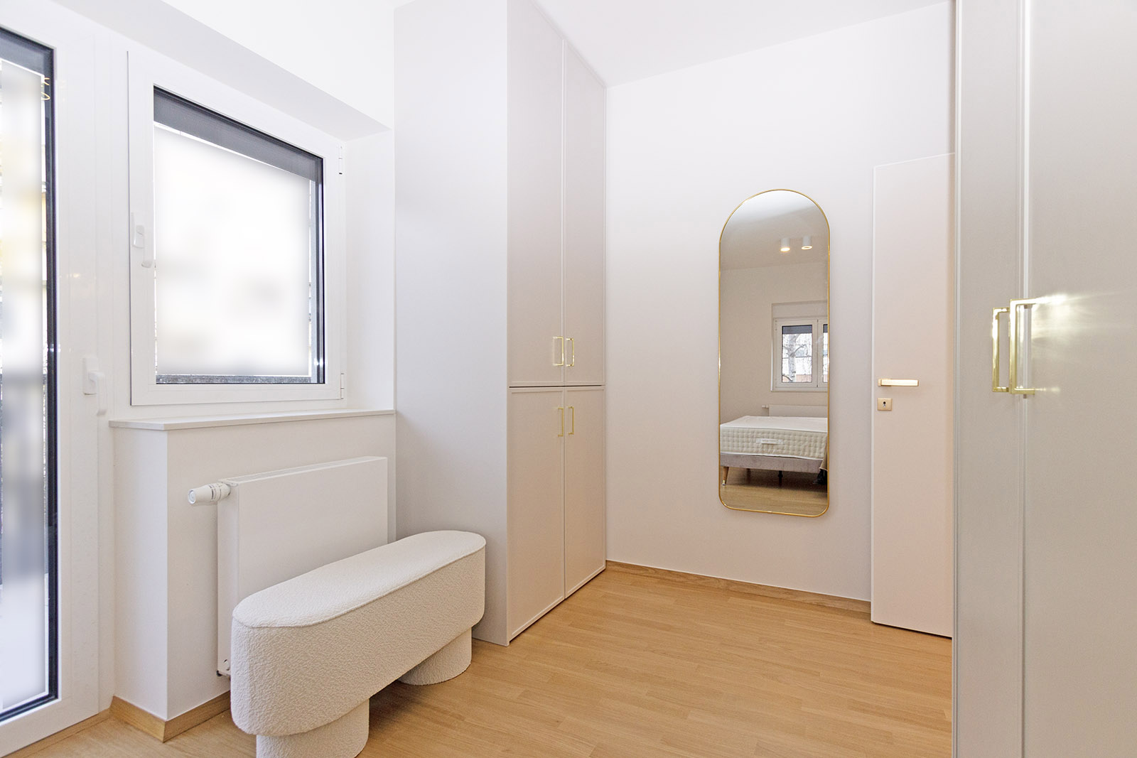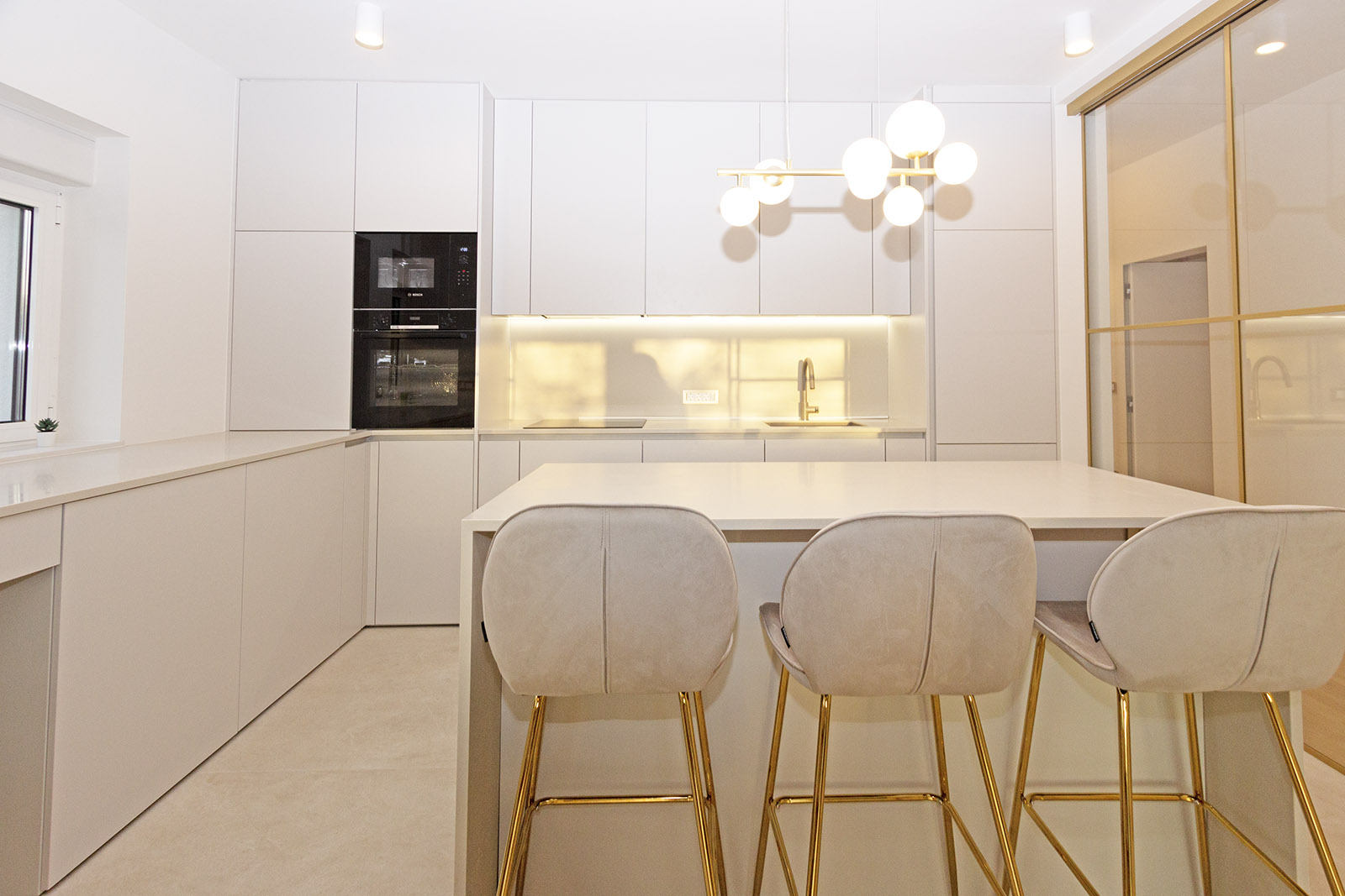 Kuhinja i svi ugradbeni ormari su rađeni po mjeri.