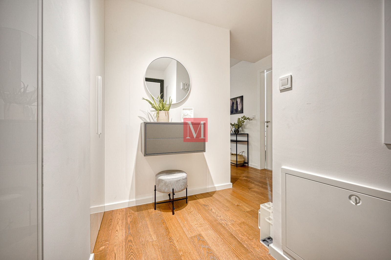 Sastoji se od hodnika, gostinjskog wc-a, kupaonice, dnevnog boravka s kuhinjom i blagovaonskim dijelom, spavaće sobe te natkrivene loggie.
