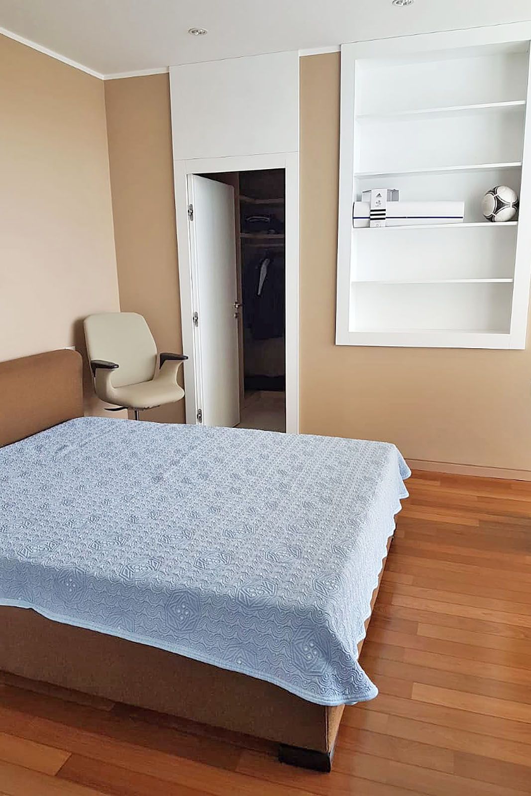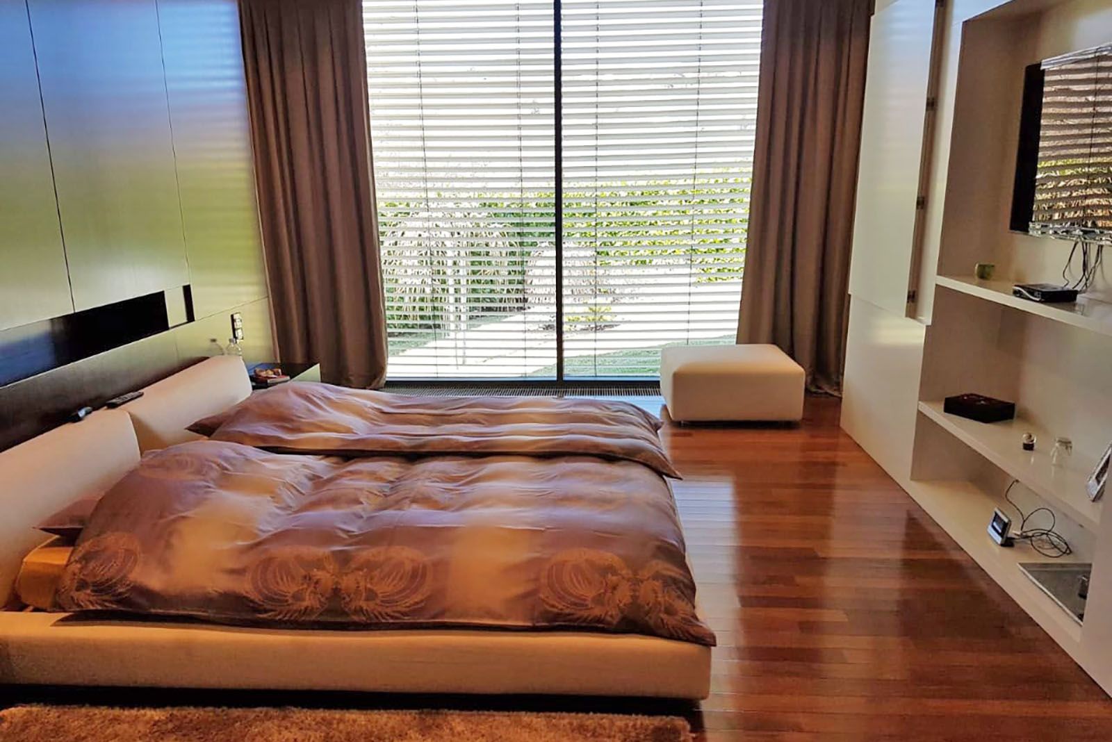 1. kat: dvije spavaće sobe, svaka s vlastitim kupaonicom i garderobom. Između dvije spavaće sobe nalazi se mali dnevni boravak i izlaz na krovnu terasu na kojoj se nalazi zelena površina.