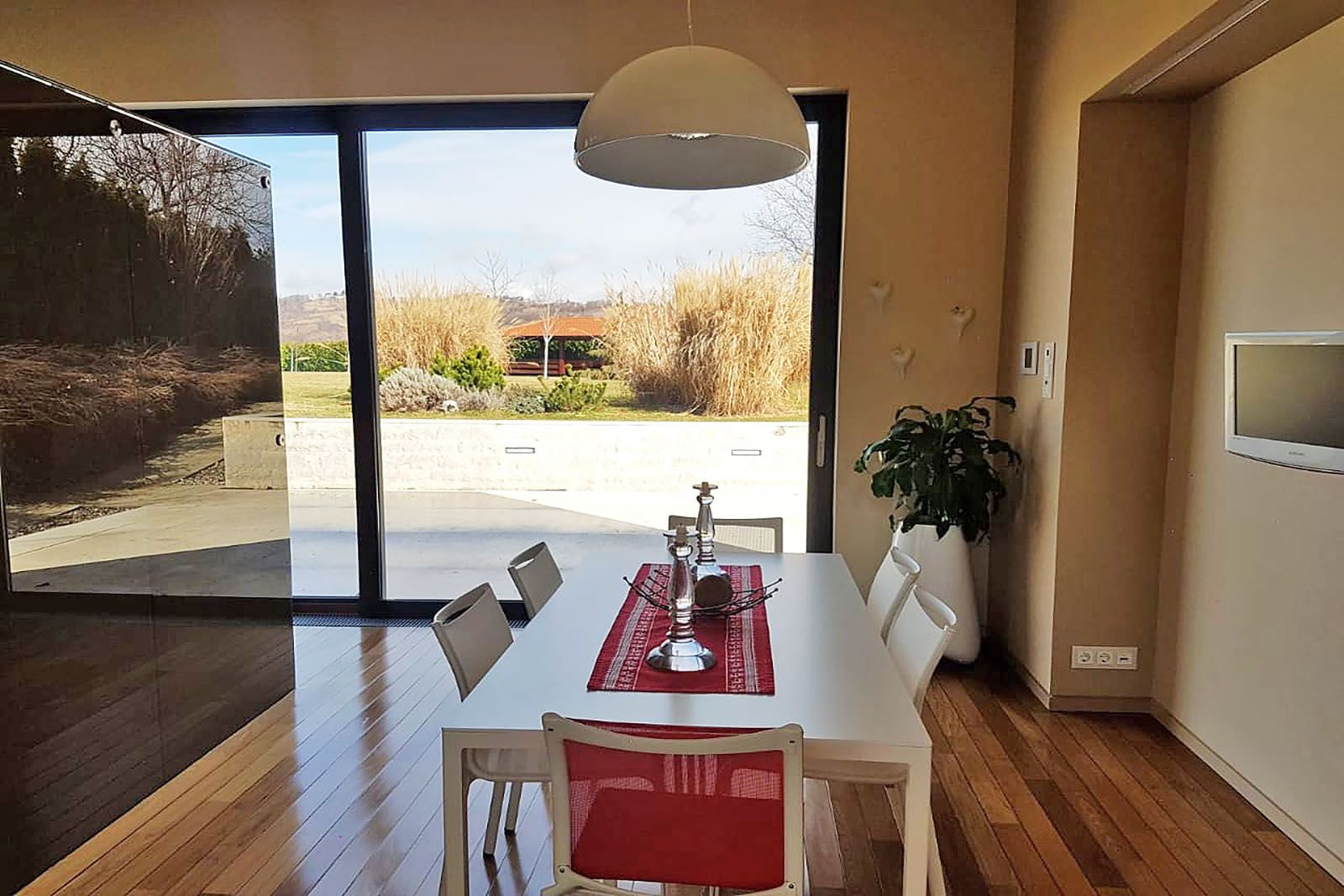 Smještena na parceli od 3800 m2 koja je veoma privatna, okružena zelenilom, mirom i tišinom.