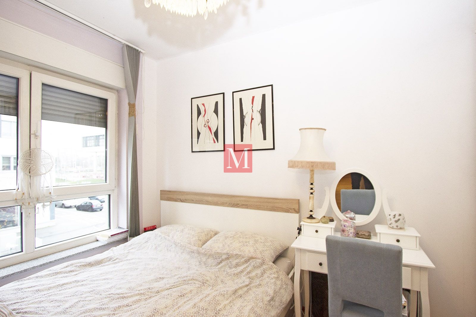 Namješten 2s stan površine 48,38m2 na prvom katu novije zgrade na Središću, u neposrednoj blizini parka Bundek.