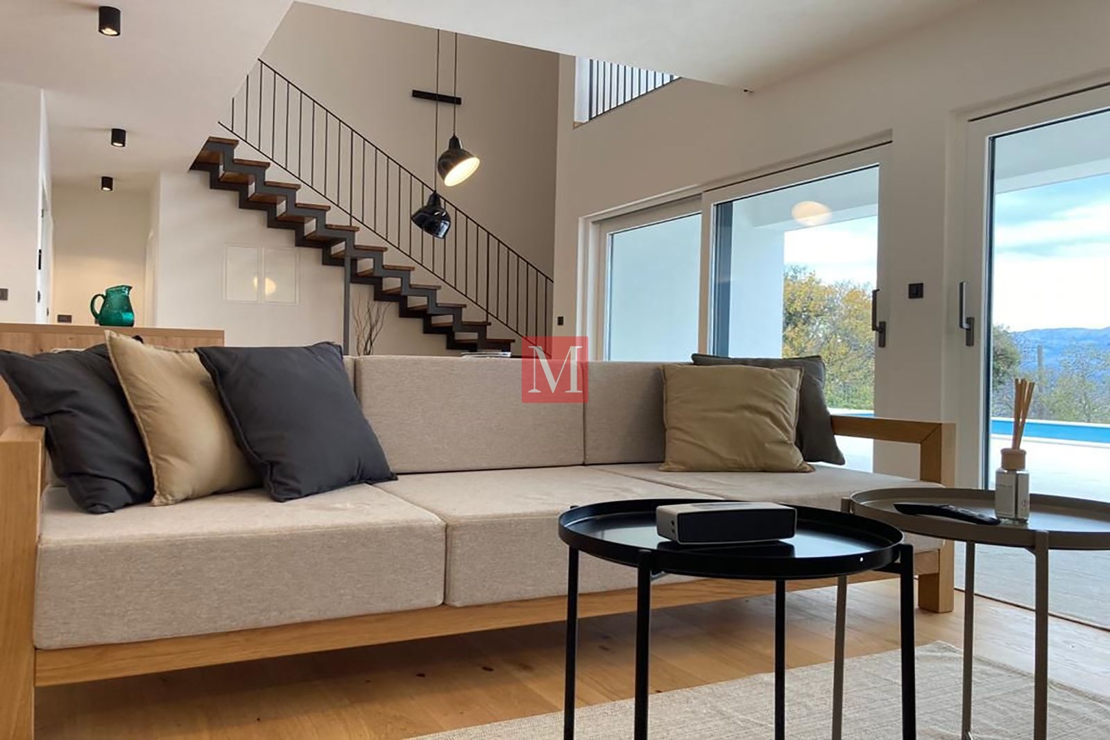 Vila je kompletno opremljena i prodaje se s namještajem koji je najvećim dijelom izrađen po mjeri.