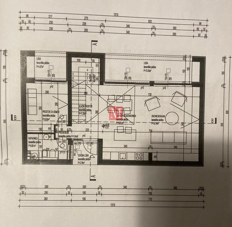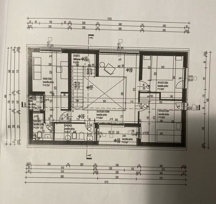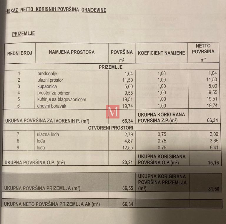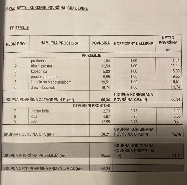 U prizemlju je predprostor, ulazni prostor, kupaonica, soba za odmor, 3 lođe, te kuhinja s blagovaonicom i dnevnim boravkom od 40 m2.