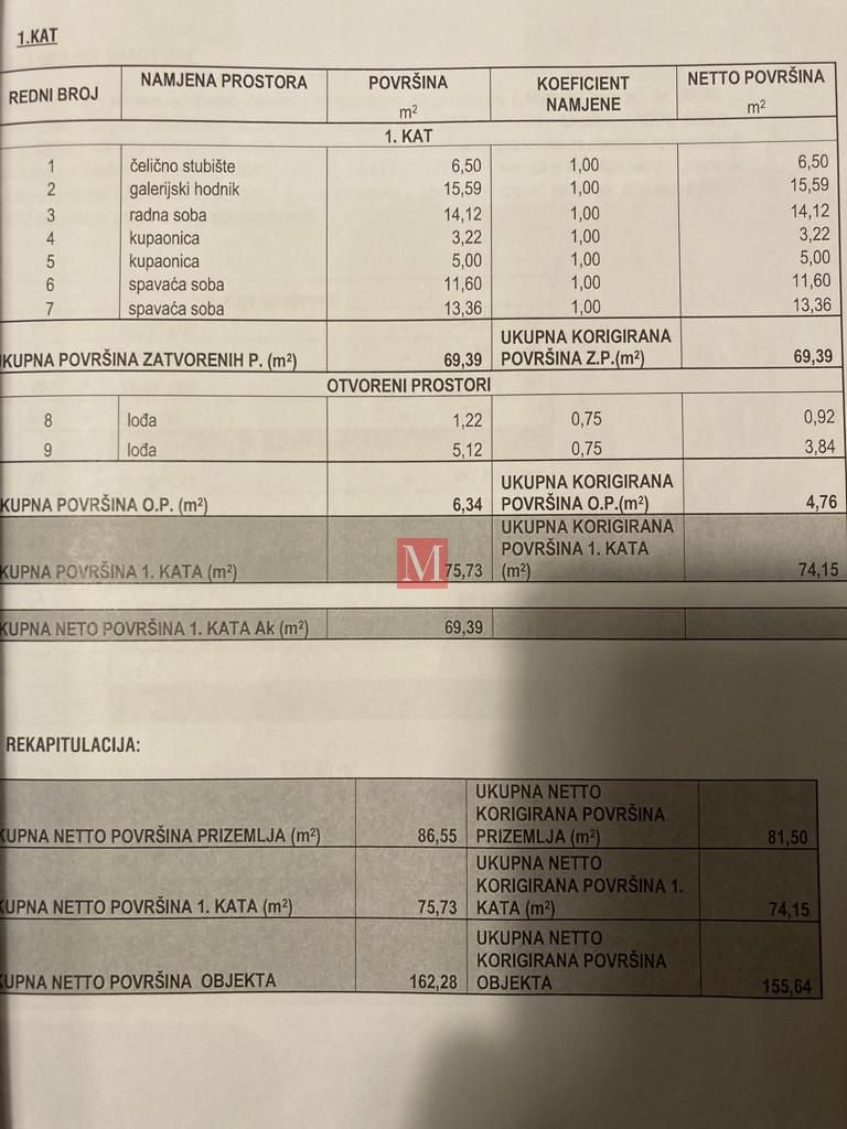 Na katu je galerijski prostor, 3 spavaće sobe, 2 kupaonice i 2 lođe.