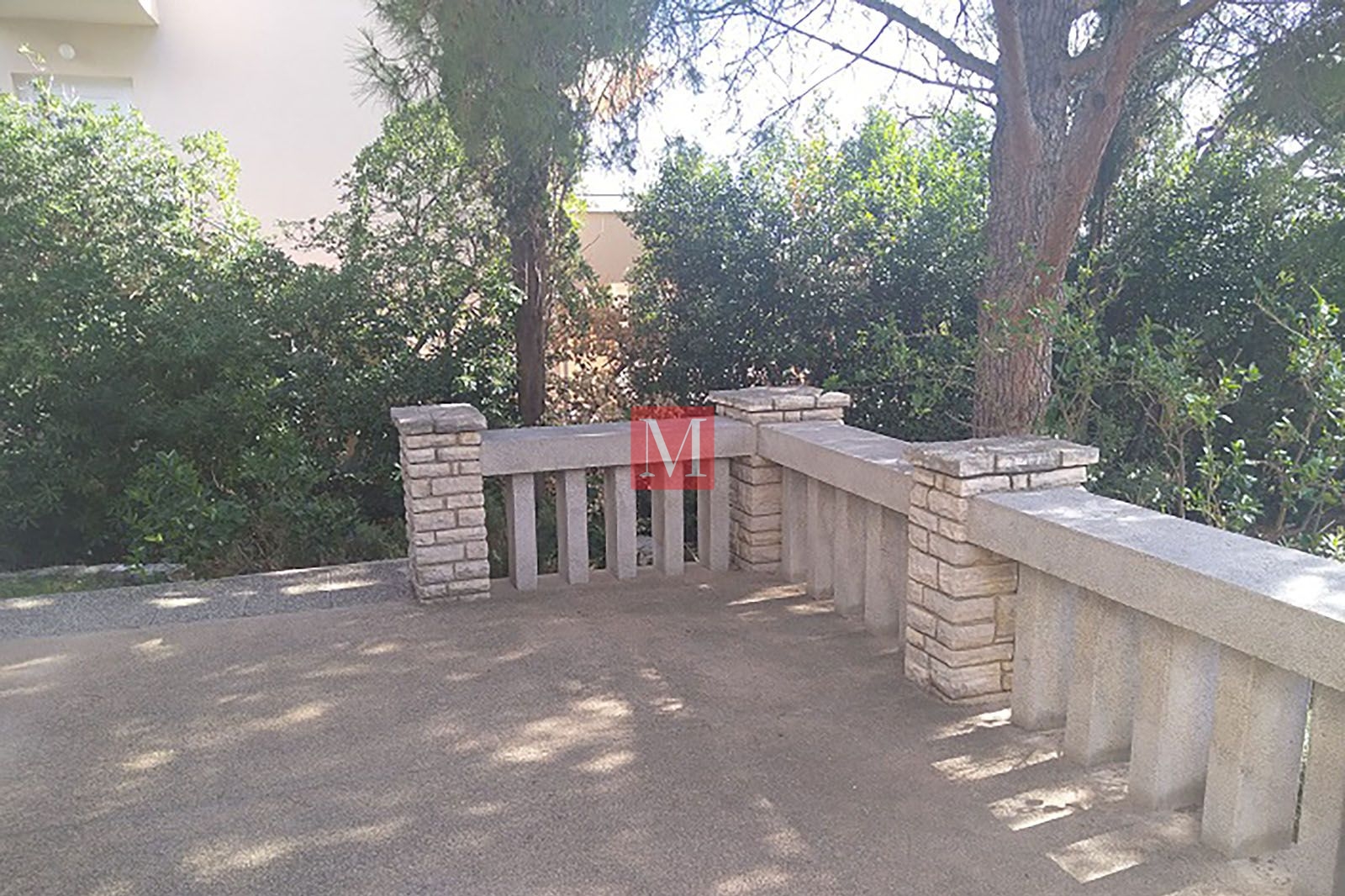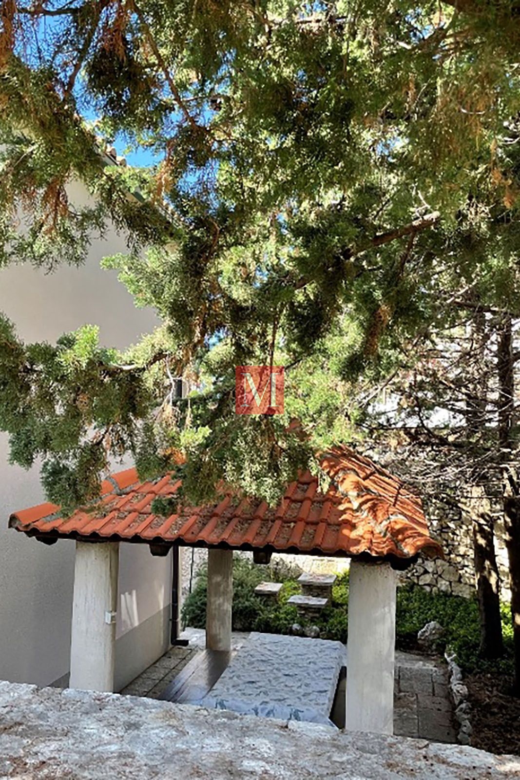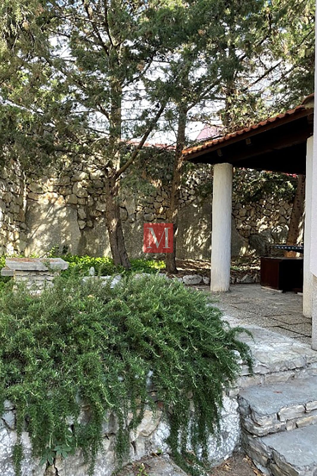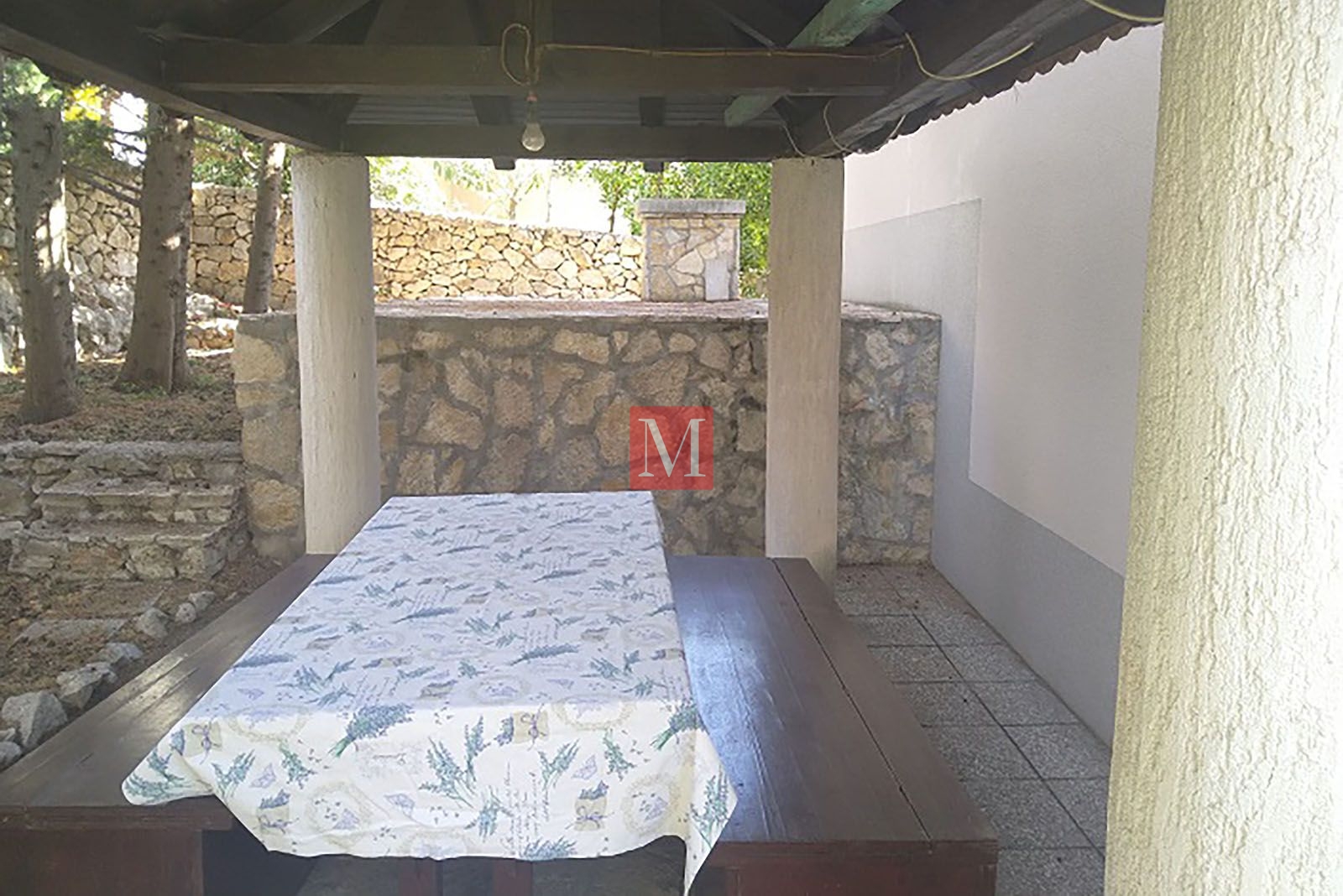 Ispred kuće se nalazi lijepa privatna i prostrana terasa dok je iza kuće smještena natkrivena sjenica i velika uređena cisterna s oborinskom vodom za održavanje mediteranskog vrta sa stablima maslina, smokava i citrusima.