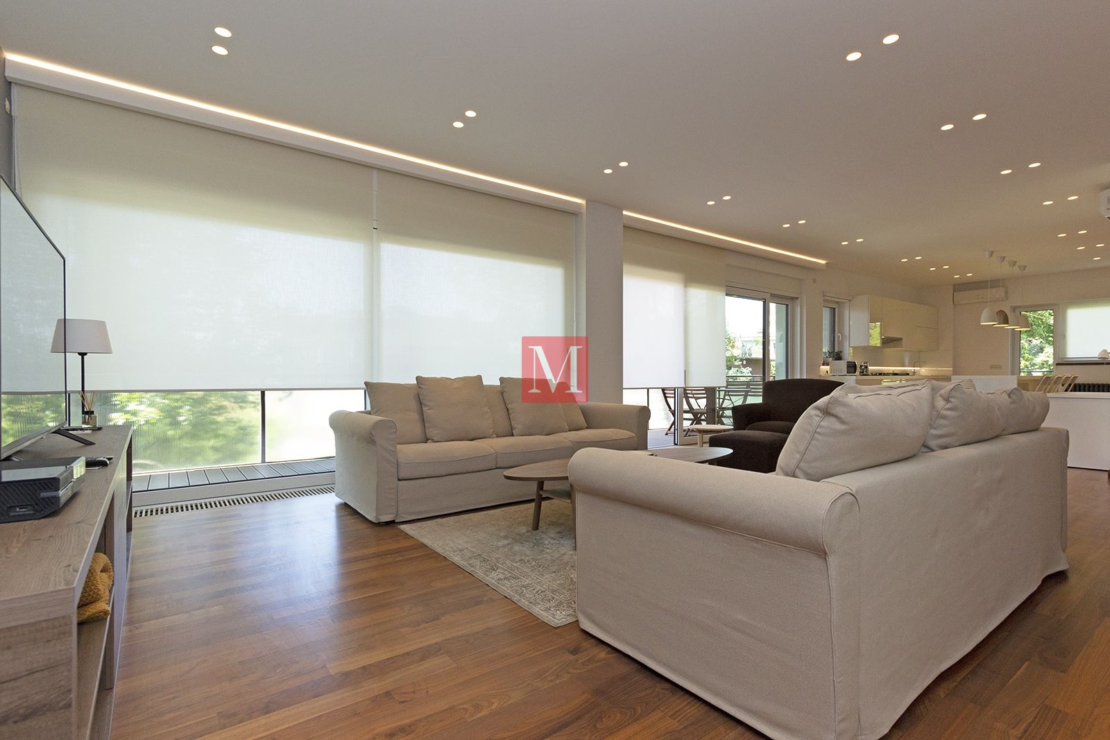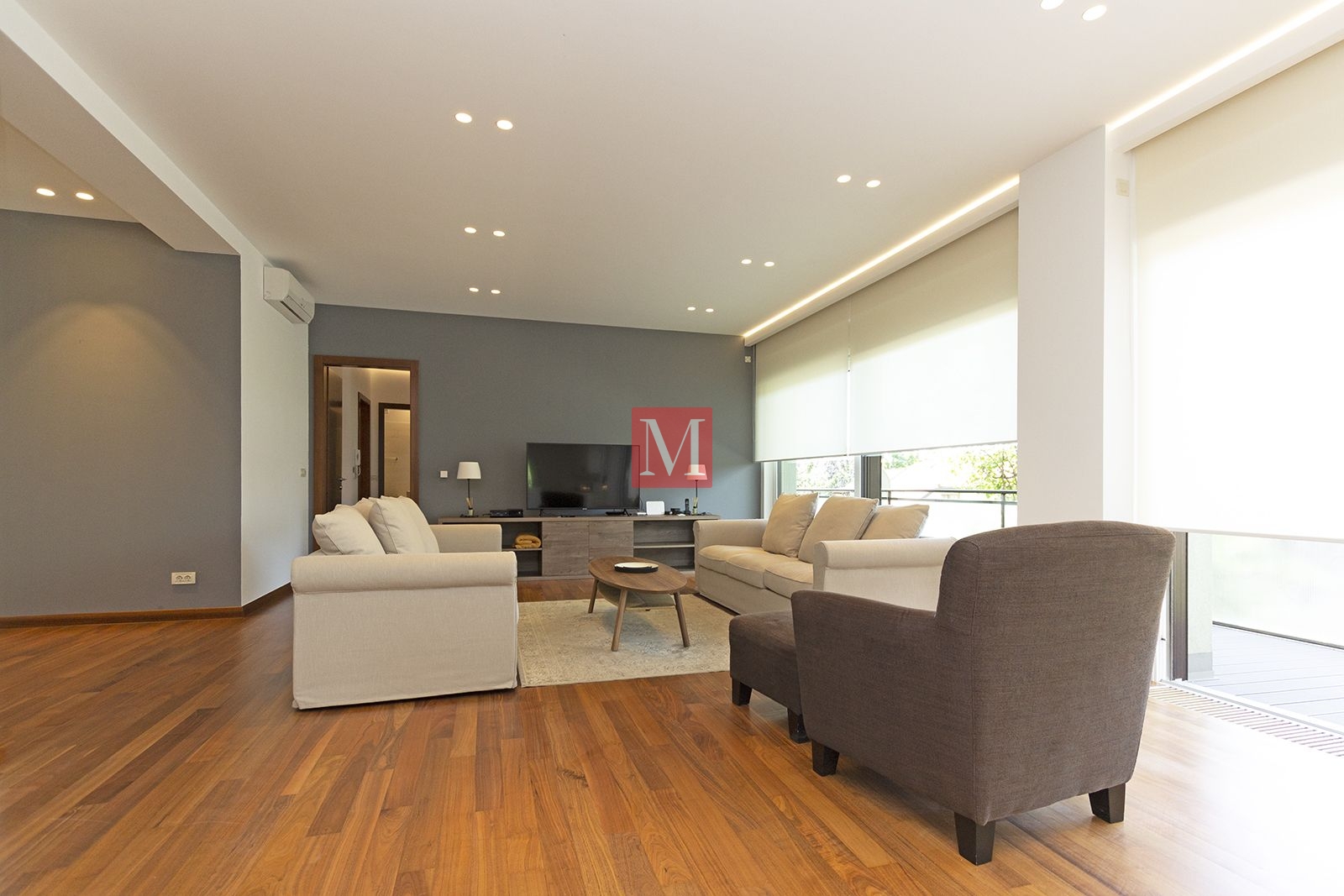 Sastoji se od ulaznog hola, prostranog i reprezentativnog dnevnog boravka sa blagovaonskim dijelom, kuhinjom i ostavom, velike terase od 38m2 sa koje se pruža predivan pogled, glavne spavaće sobe sa vlastitom kupaonicom sa tušem i kadom, 2 spavaće sobe koje dijele 1 kupaonicu sa tušem, radne sobe i još jedne kupaonice sa tušem.