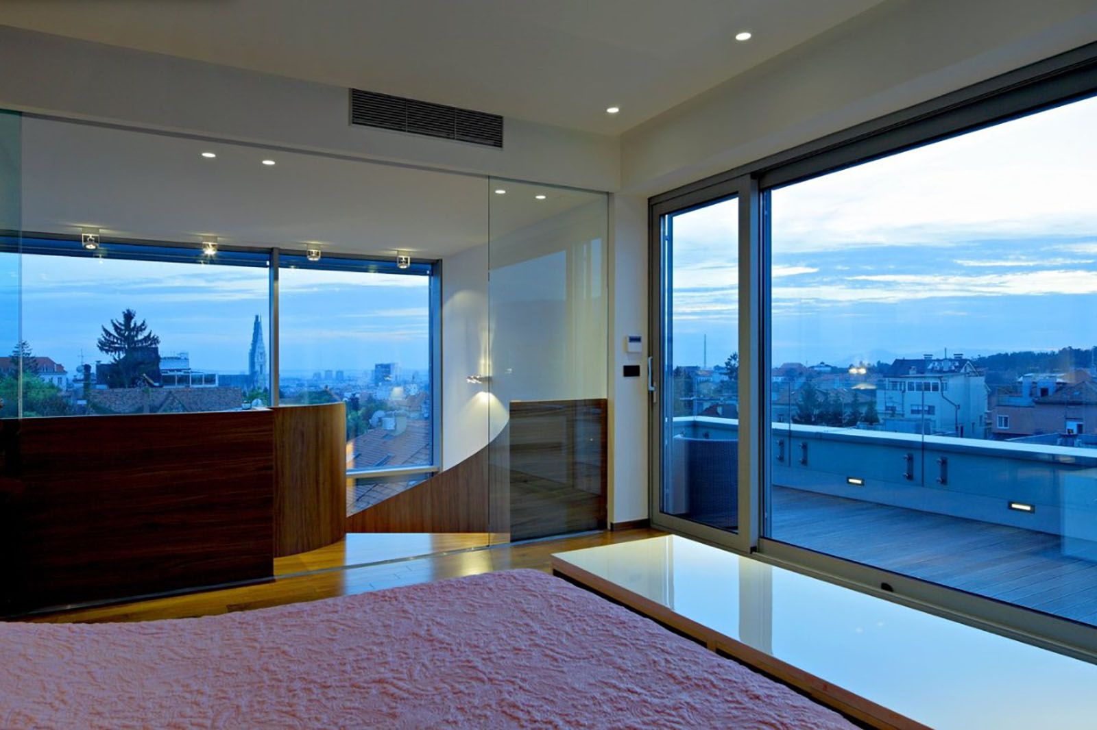 Uz klasične stambene prostorije kao što su radna soba, kuhinja, blagovaonica, 3 spavaće sobe i 3 kupaonice, kuća je bogato opremljena i luksuznim sadržajima kao što su krovni bazen, lift, wellness/fitness, sauna i zeleni krov.