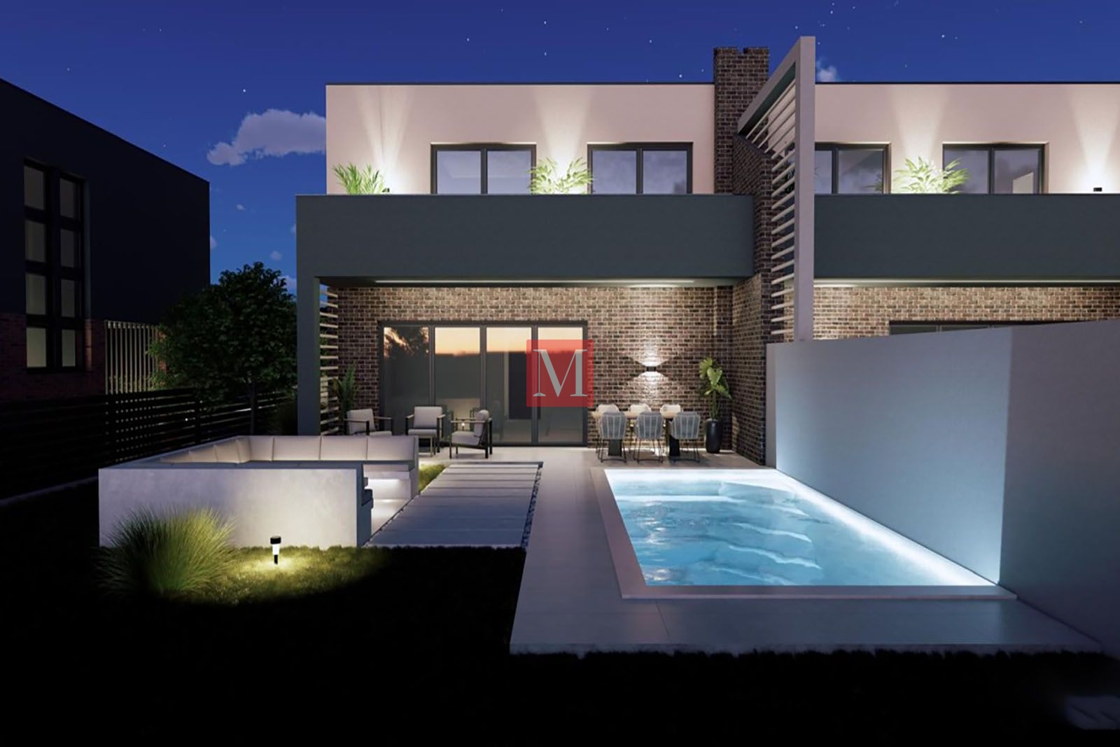 Uz klasične stambene prostorije kao što su radna soba, kuhinja, blagovaonica, 3 spavaće sobe i 3 kupaonice, kuća je bogato opremljena i luksuznim sadržajima kao što su krovni bazen, lift, wellness/fitness, sauna i zeleni krov.