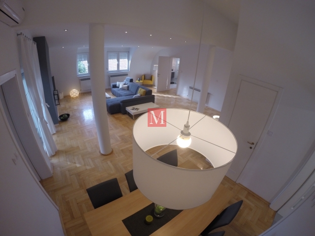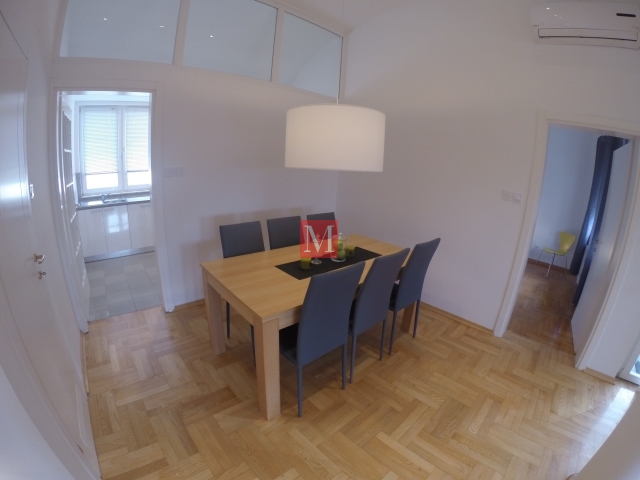 Vrlo lijep i moderno namješten stan u obiteljskoj kući na Šalati, nadomak svih sadržaja i internacionalnih škola. Stan se sastoji od predsoblja s ugrađenim ormarom, odvojene kuhinje, prostranog dnevnog boravka s blagovaonicom, 3 spavaće sobe, 2 kupaonice i 2 terase. U dvorištu je i jedno natkriveno parkirno mjesto. Slobodan za najam od 1.07.2018. Agencijska provizija za najmoprimca: 1 mjesečna najamnina+pdv.