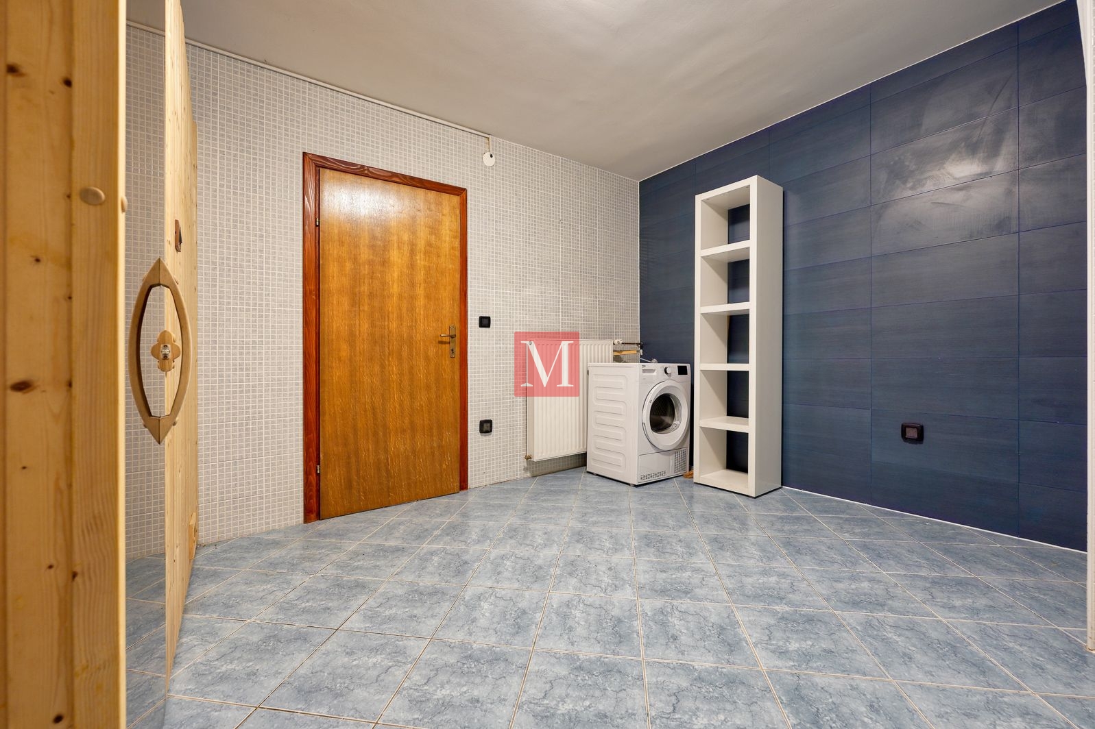 Podrum – velika polivalentna prostorija (društvena/hobby room), wellness prostorija sa finskom saunom i tušem, te spremište;