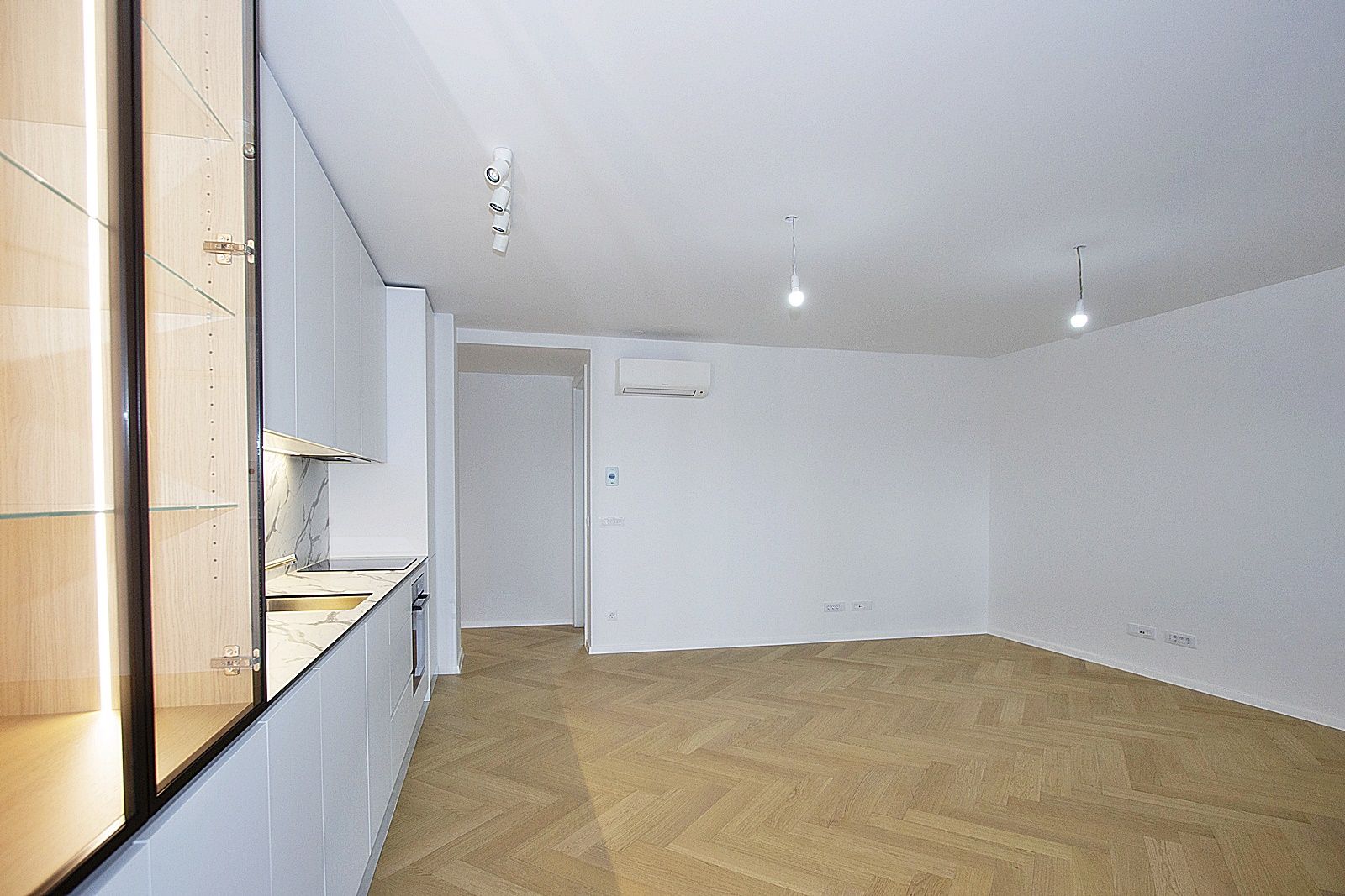 Sastoji od se od ulaznog hola, dnevnog boravka s kompletno opremljenom kuhinjom i izlazom na lođu, 2 sobe i 2 opremljene kupaonice sa sanitarijama i visoko kvalitetnim aparatima (perilica i sušilica rublja).