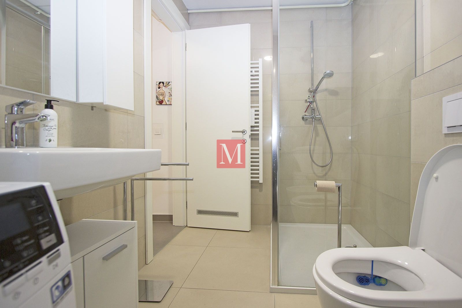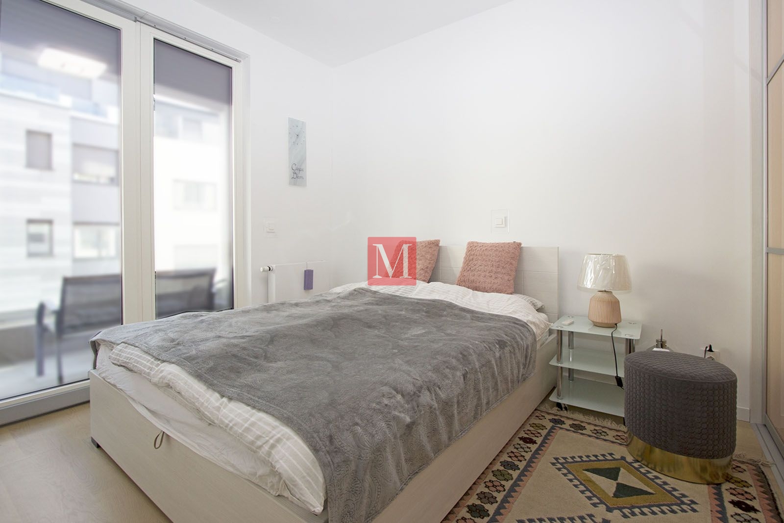 Moderno uređen, nov i malo korišten dvosobni stan od 58m2, s loggiom i parkingom u novogradnji s liftom, na jednoj od najtraženijih lokacija na Trešnjevci – Trakošćanska ulica.