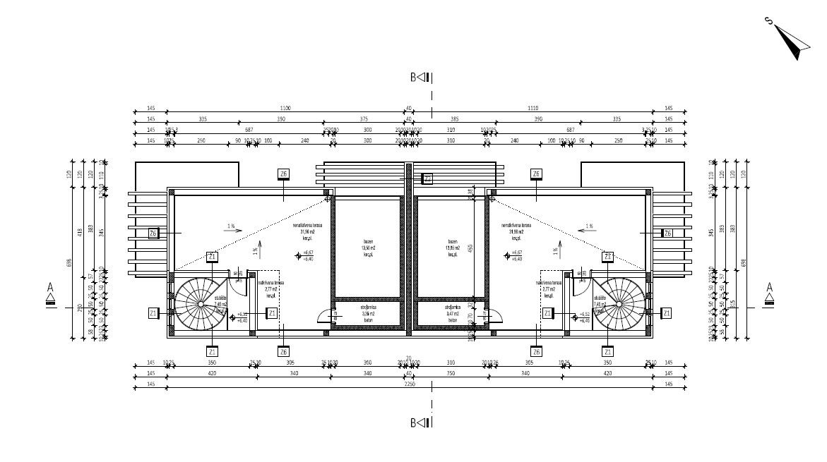 Krovni dio vile sastoji se od nenatkrivene terase (NKP 7,86m2) i natkrivene terase (NKP 1,39m2) sa bazenom.
