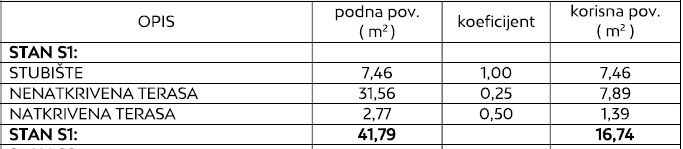 Vila je dio dvojnog objekta raspoređena u 2 etaže. Ukupna netto površina dvojnog objekta iznosi 297,56m2. Mogućnost kupnje cijelog dvojnog objekta kao i svakog dijela zasebno.